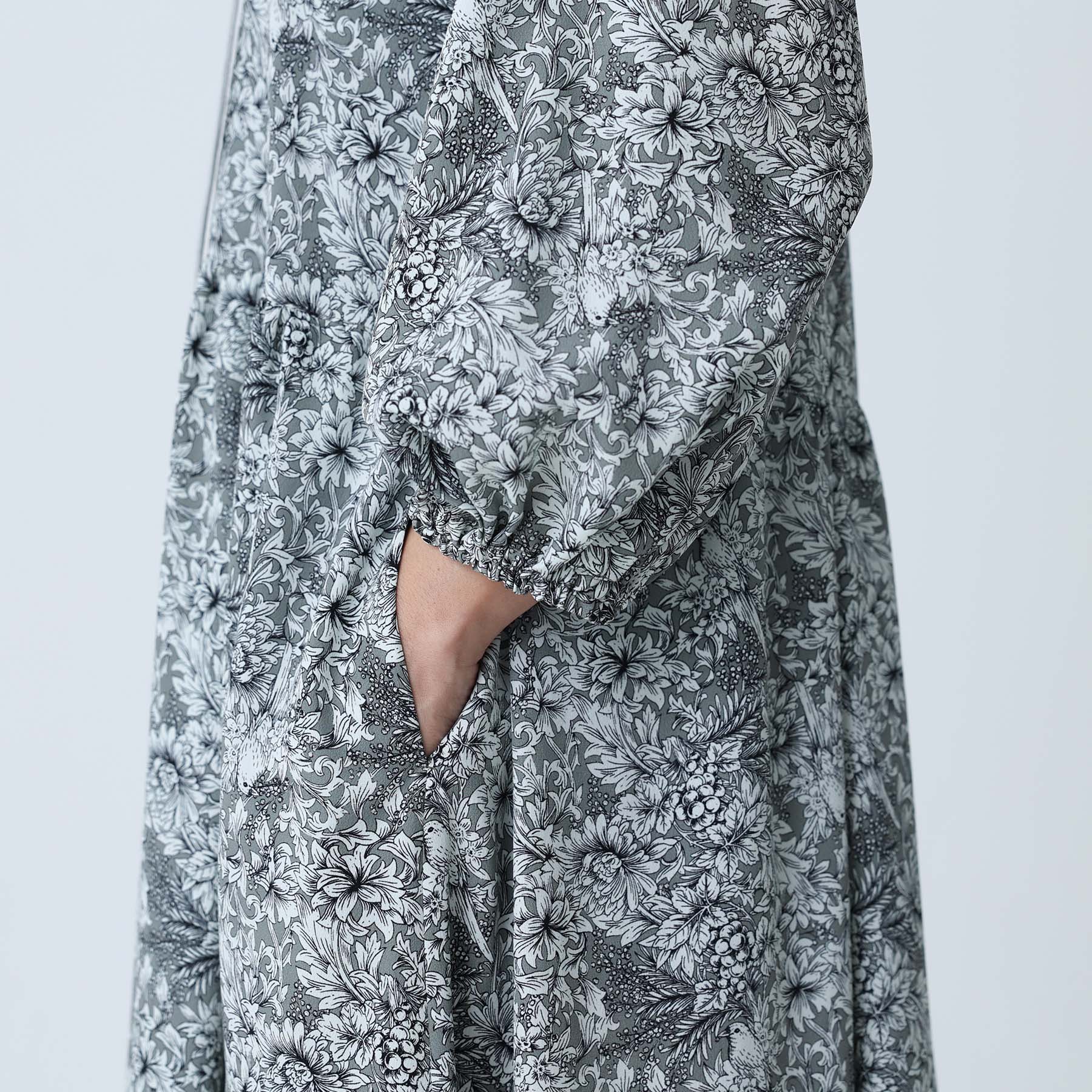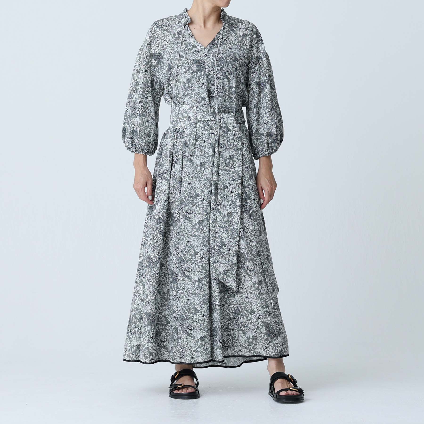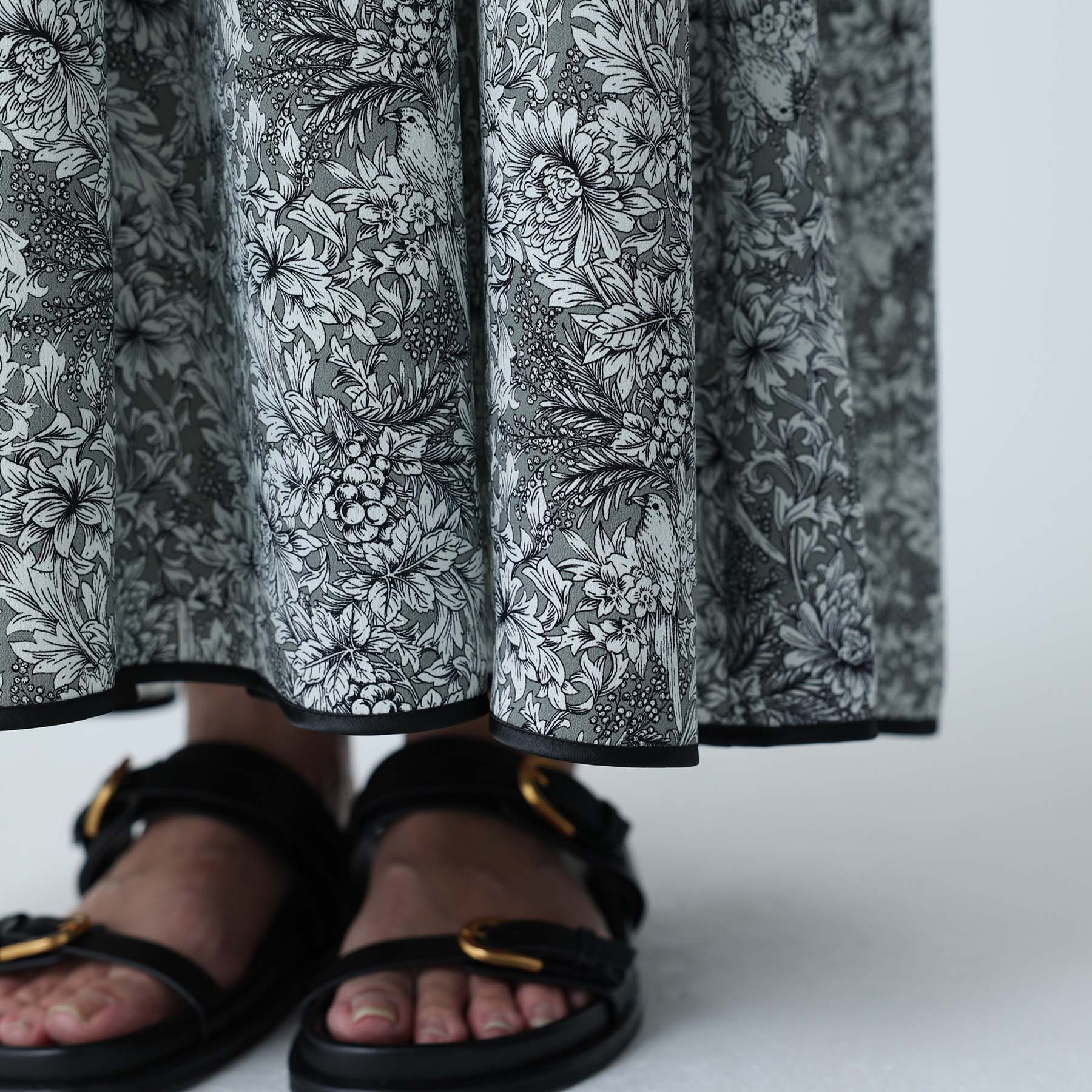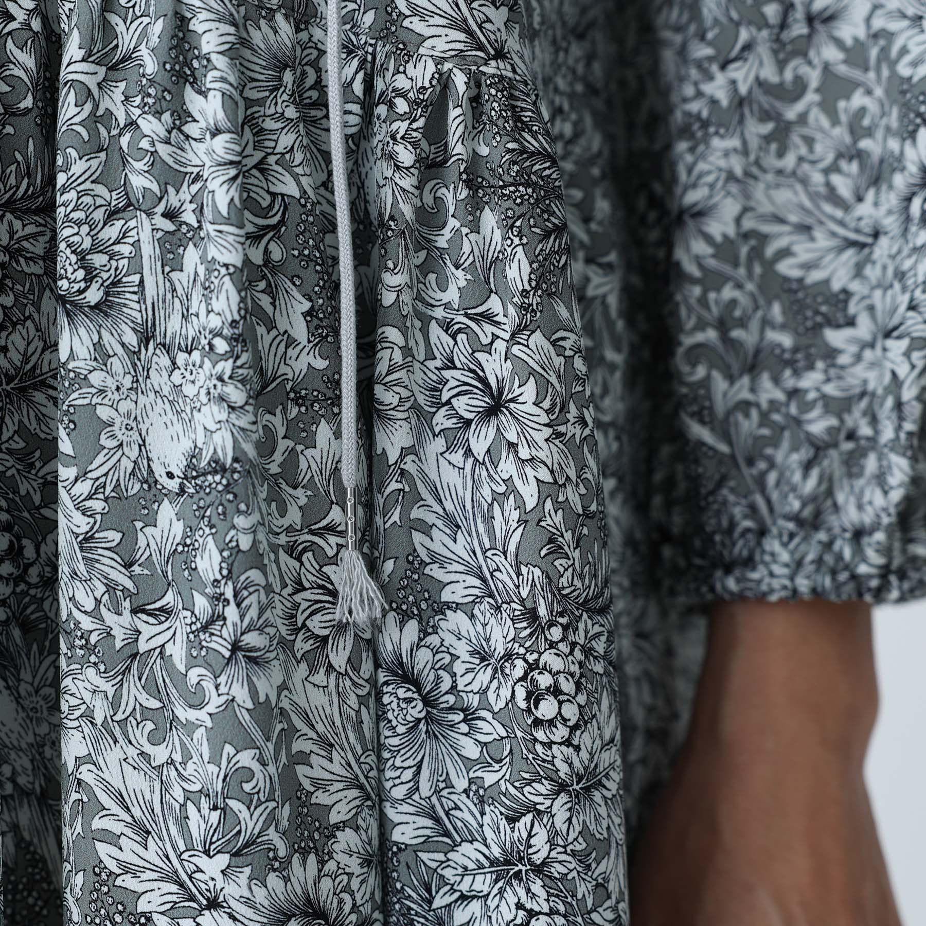 The balance of the seam position and the pattern cutting that widens circularly towards the hem create an elegant drape and create a beautiful silhouette when worn.