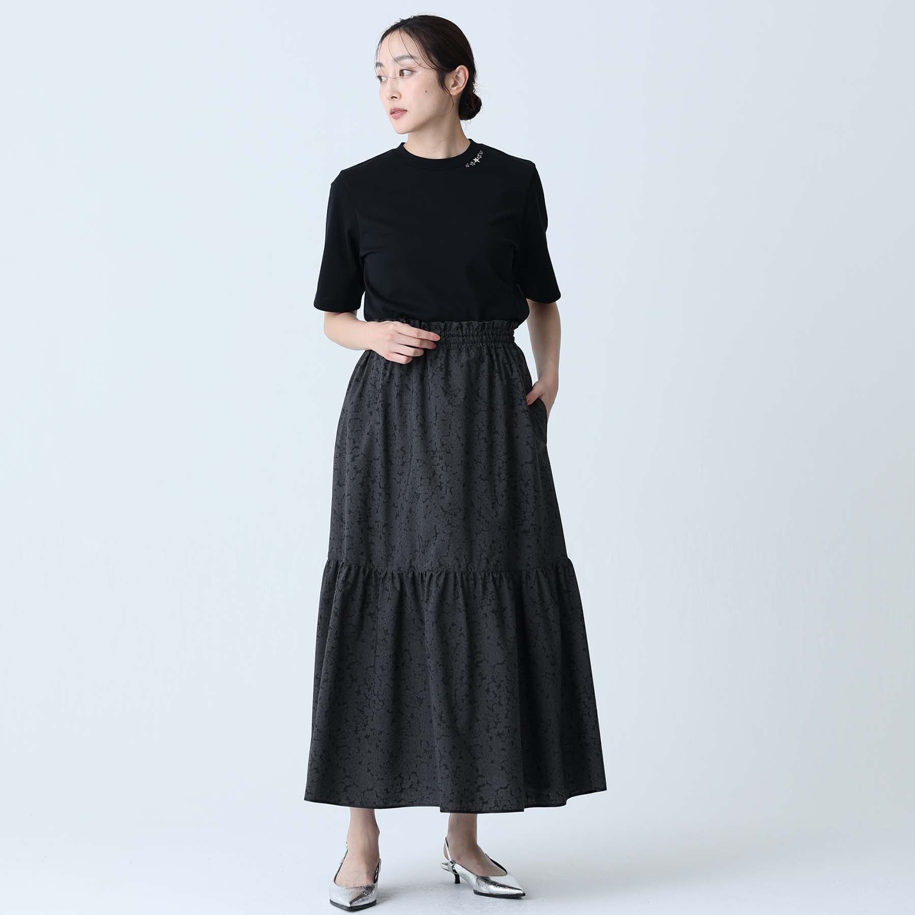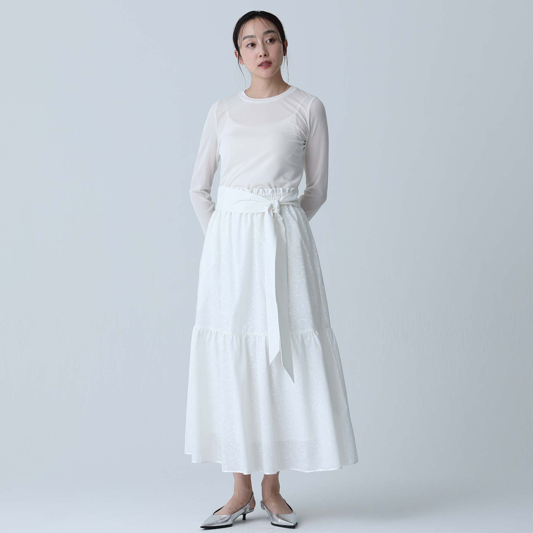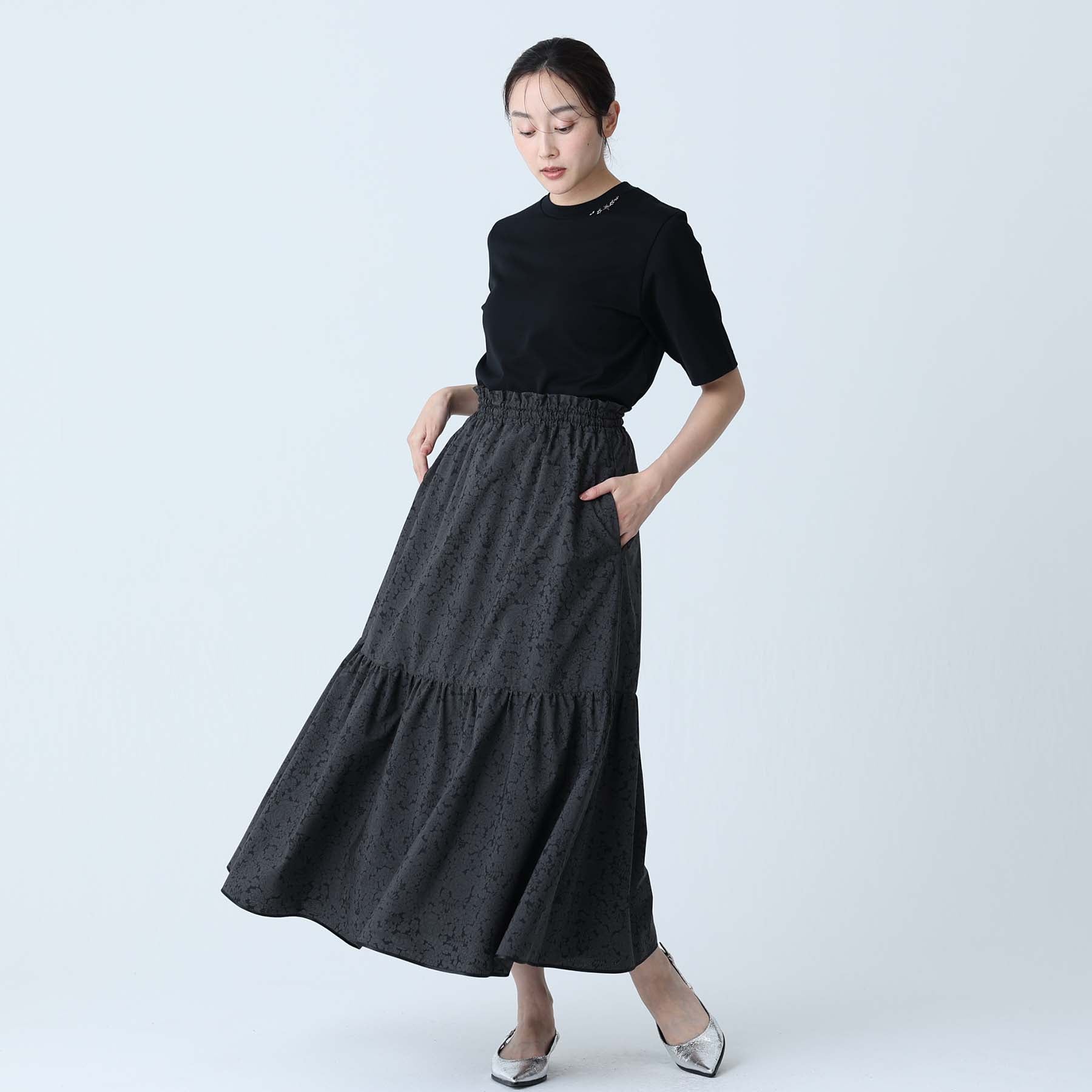 The balance of the seam position and the pattern cutting that widens circularly towards the hem create an elegant drape and create a beautiful silhouette when worn.