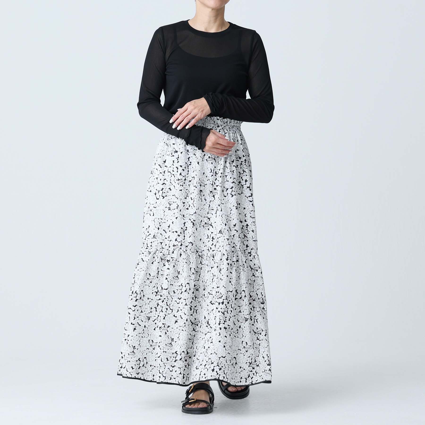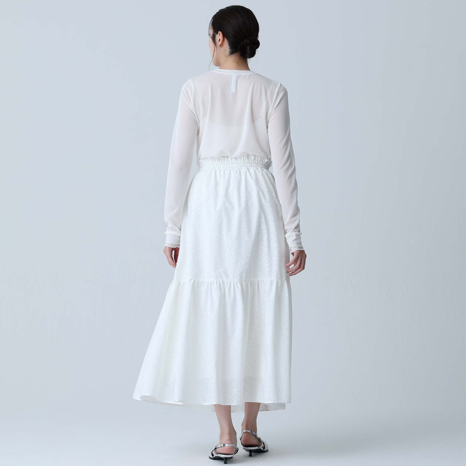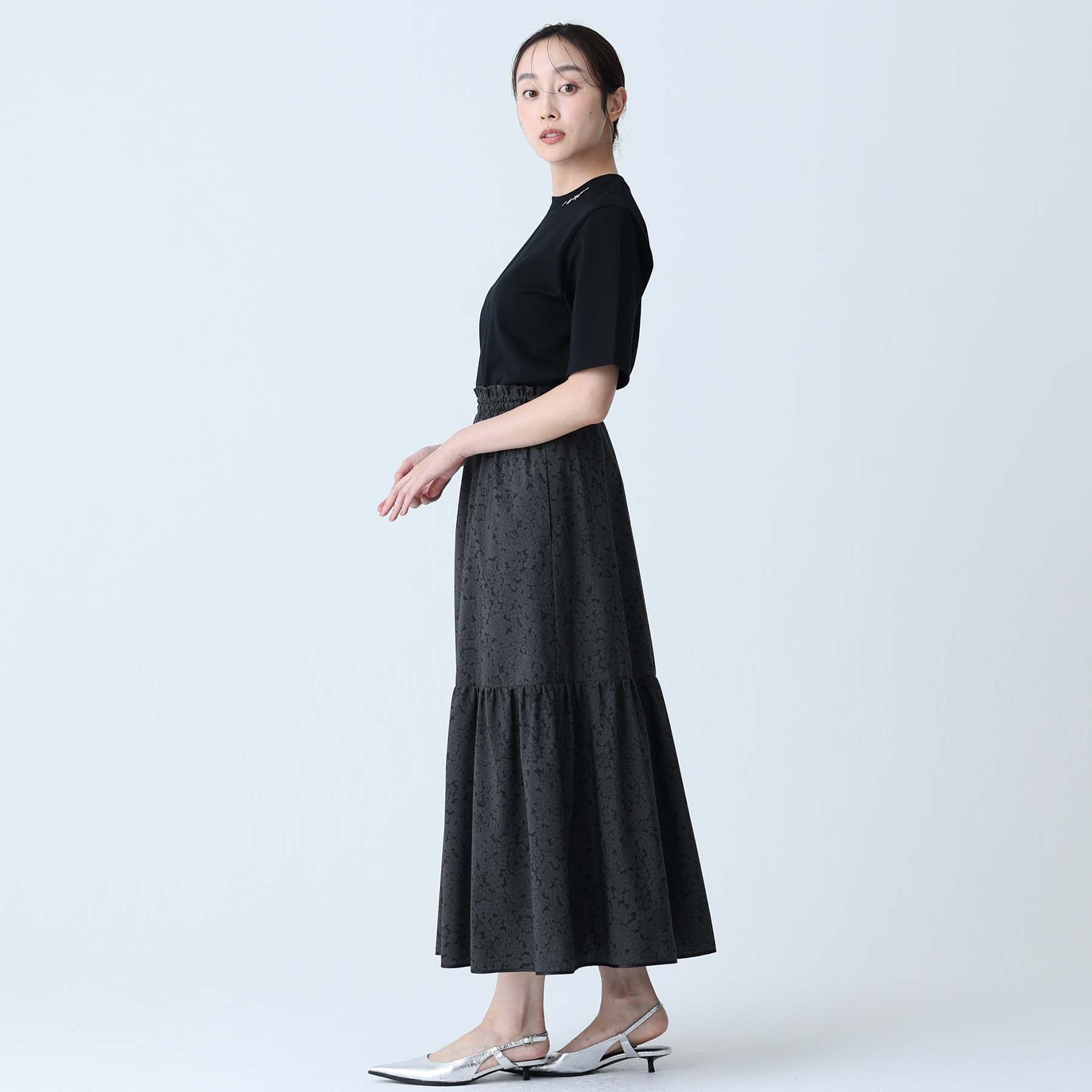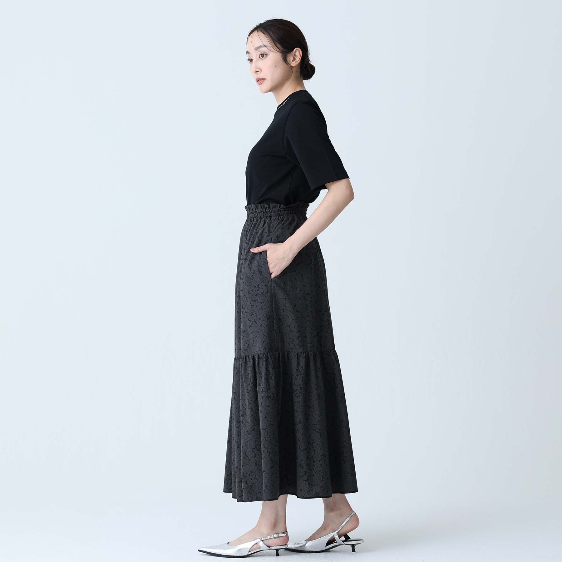 The balance of the seam position and the pattern cutting that widens circularly towards the hem create an elegant drape and create a beautiful silhouette when worn.