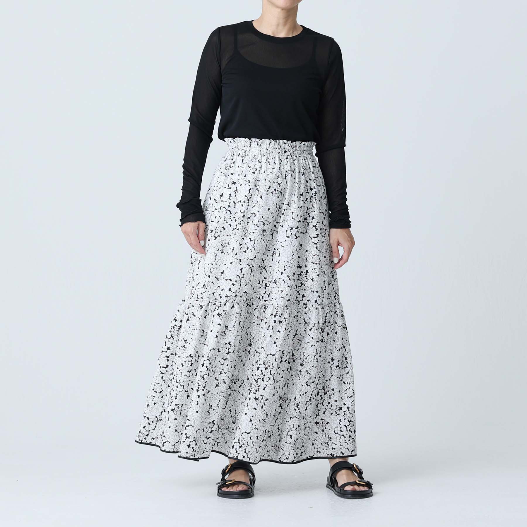 A three-tiered tiered skirt finished in the golden ratio.