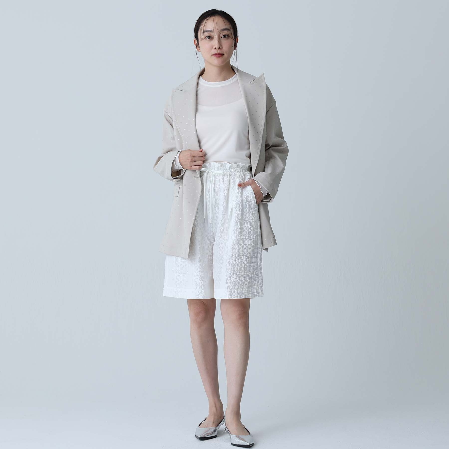 The waist is made with the classic elastic and spindle design, and it is equipped with features such as seam pockets on both sides to ensure a comfortable fit.
