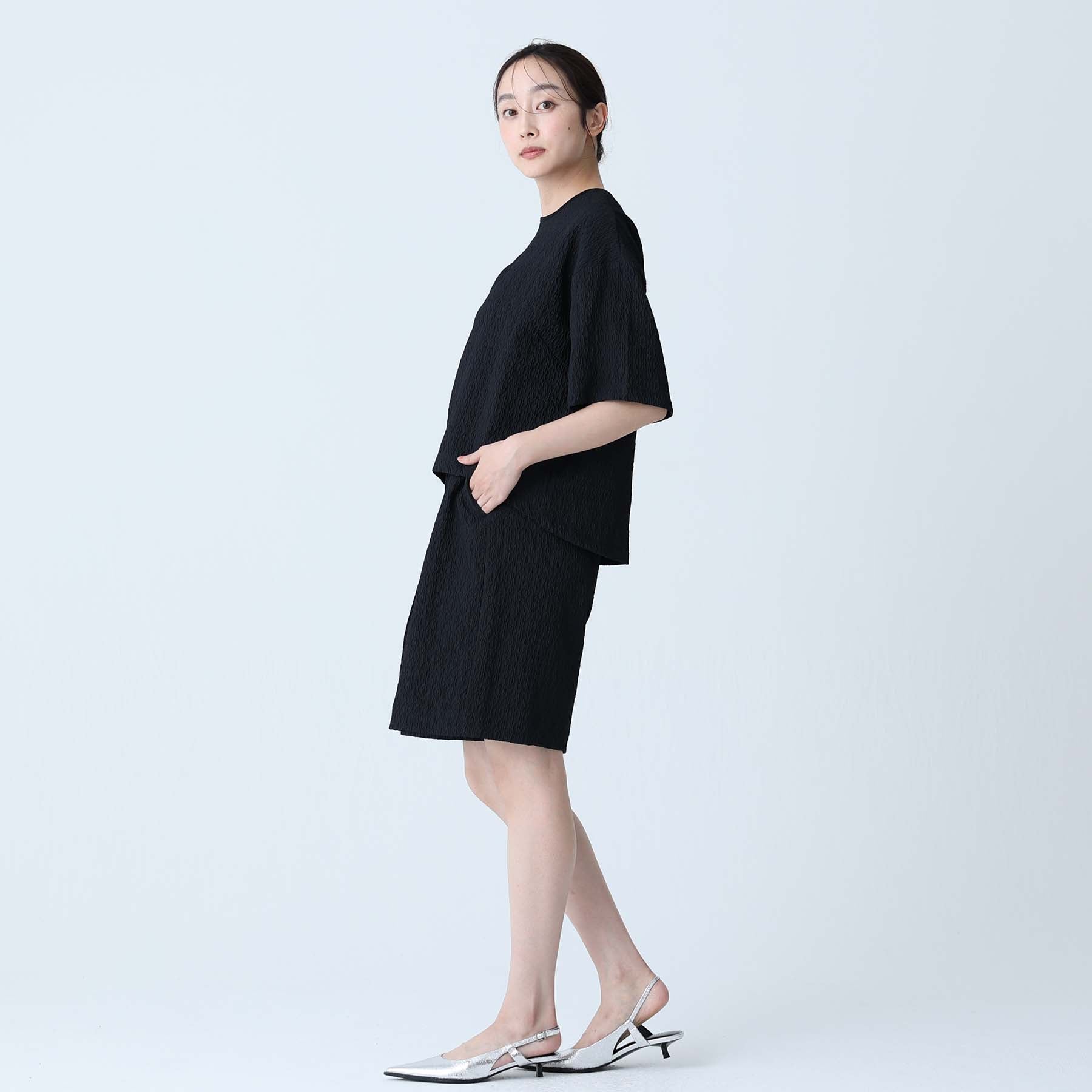 The balance of the seam position and the pattern cutting that widens circularly towards the hem create an elegant drape and create a beautiful silhouette when worn.