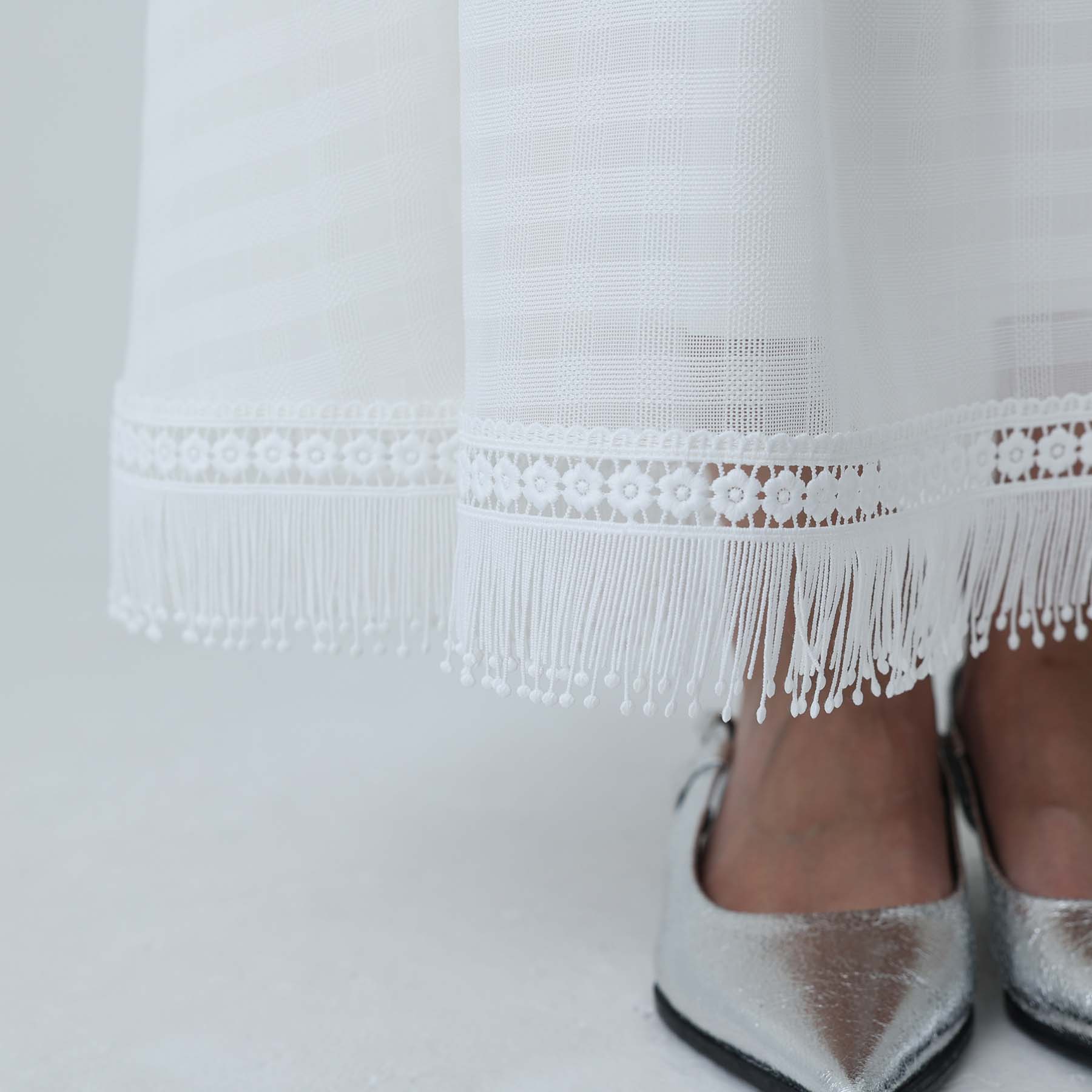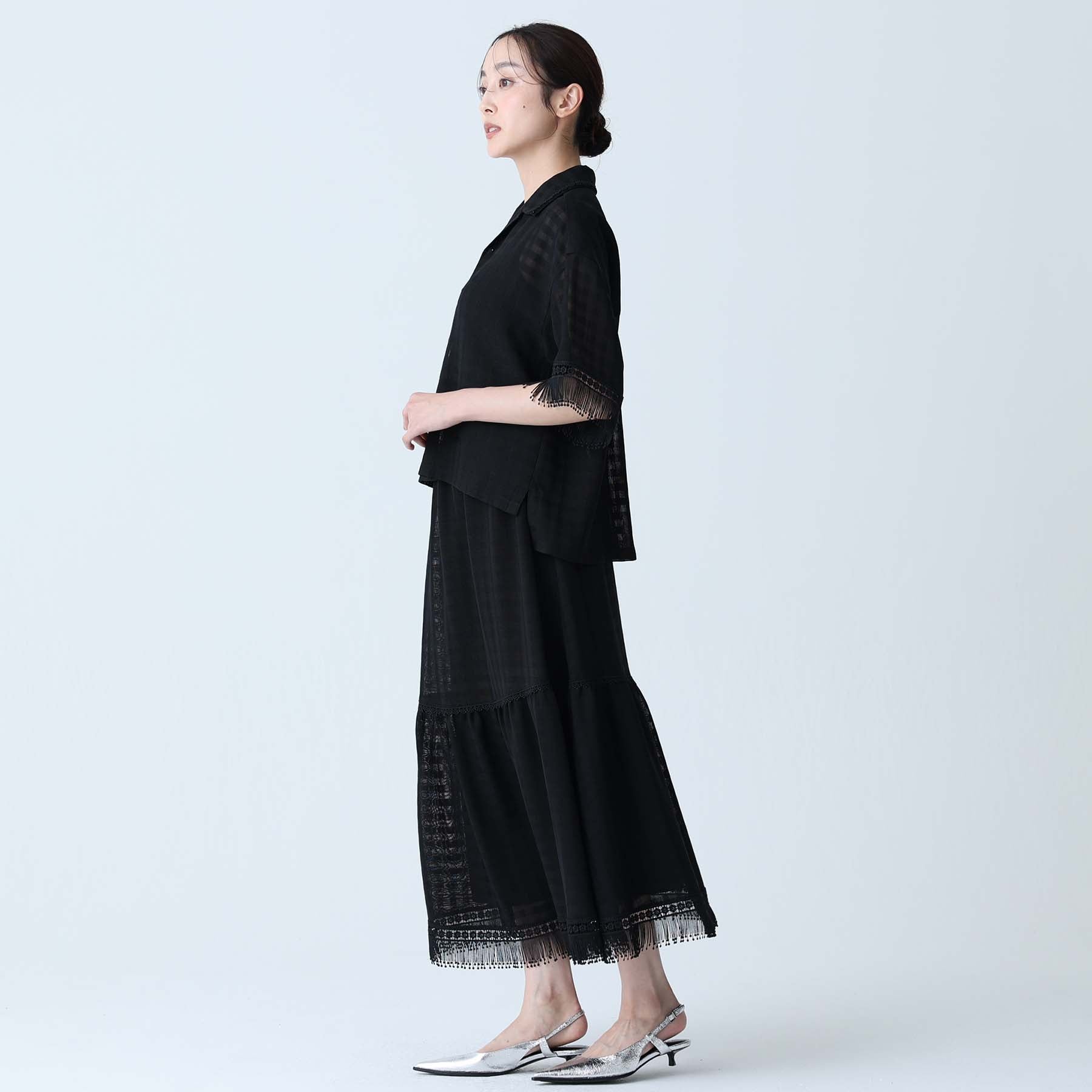 The balance of the seam position and the pattern cutting that widens circularly towards the hem create an elegant drape and create a beautiful silhouette when worn.