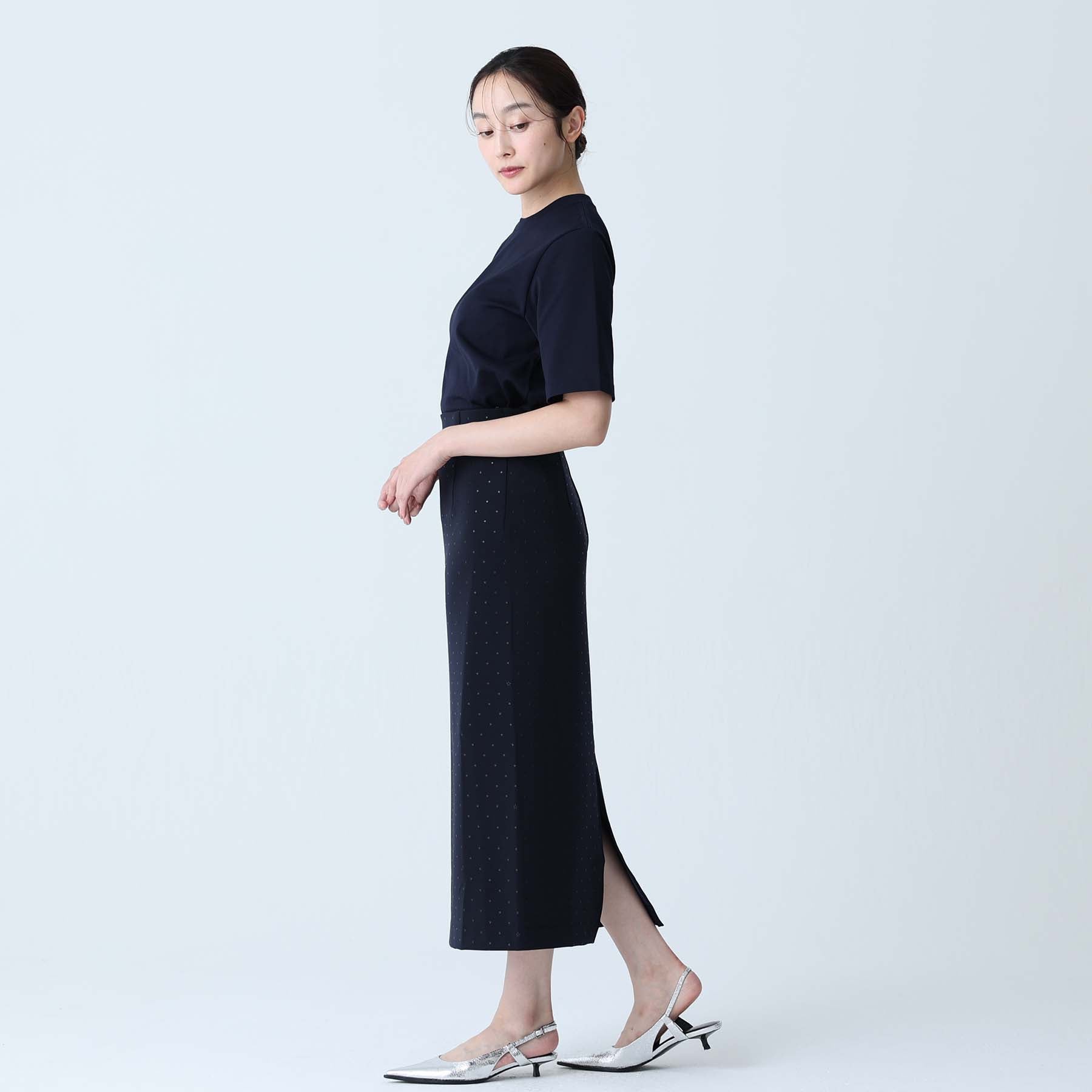 The balance of the seam position and the pattern cutting that widens circularly towards the hem create an elegant drape and create a beautiful silhouette when worn.