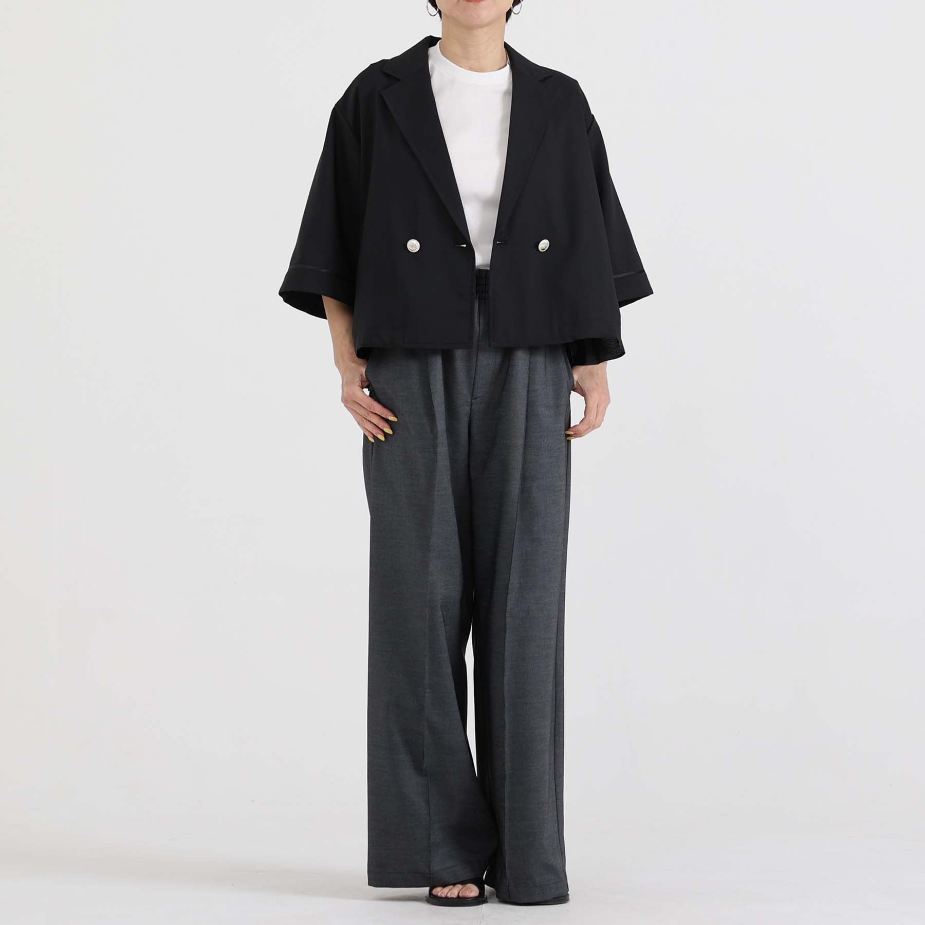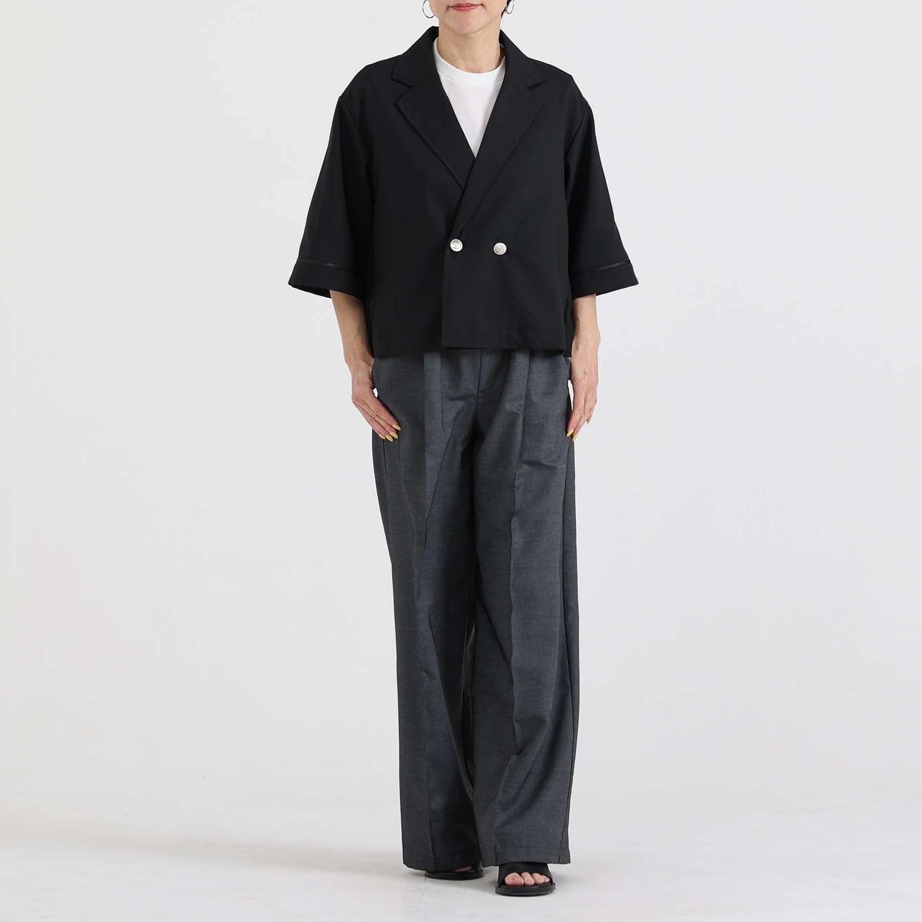 The waist is made with the classic elastic and spindle design, and it is equipped with features such as seam pockets on both sides to ensure a comfortable fit.