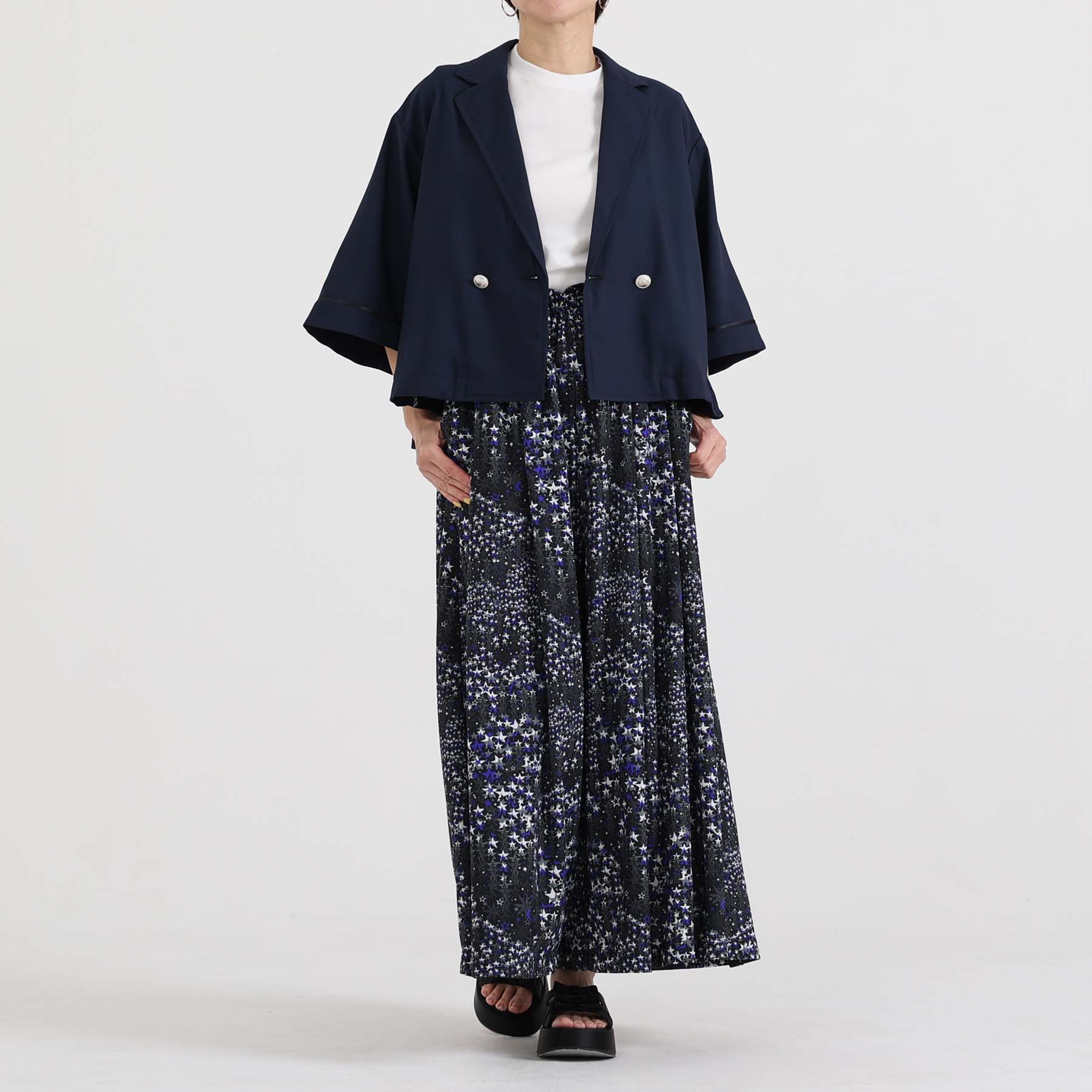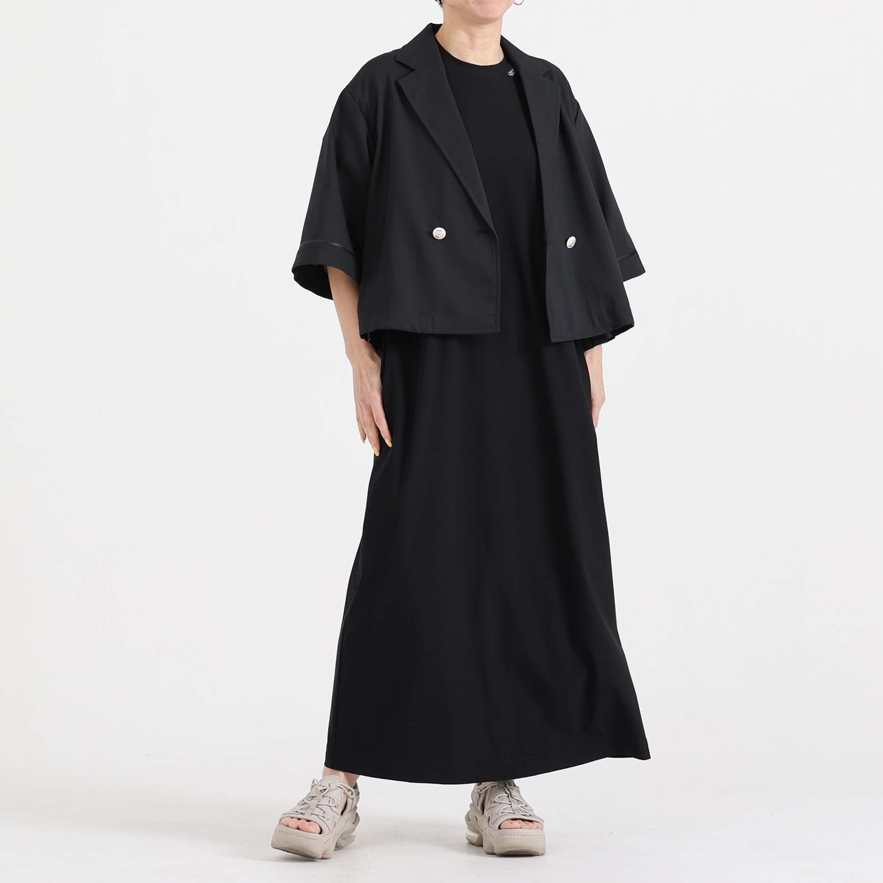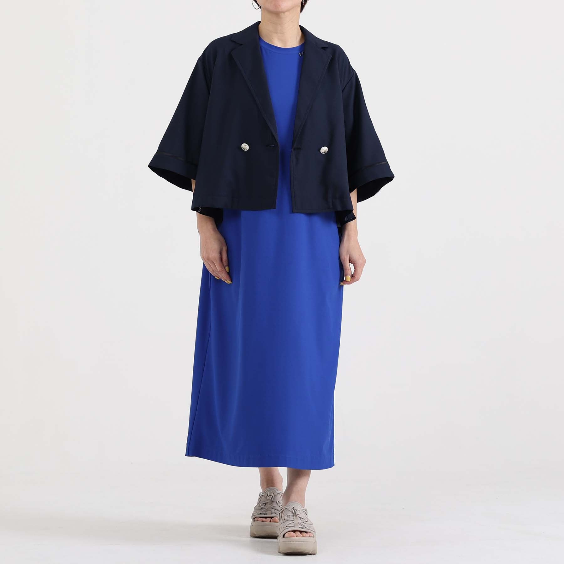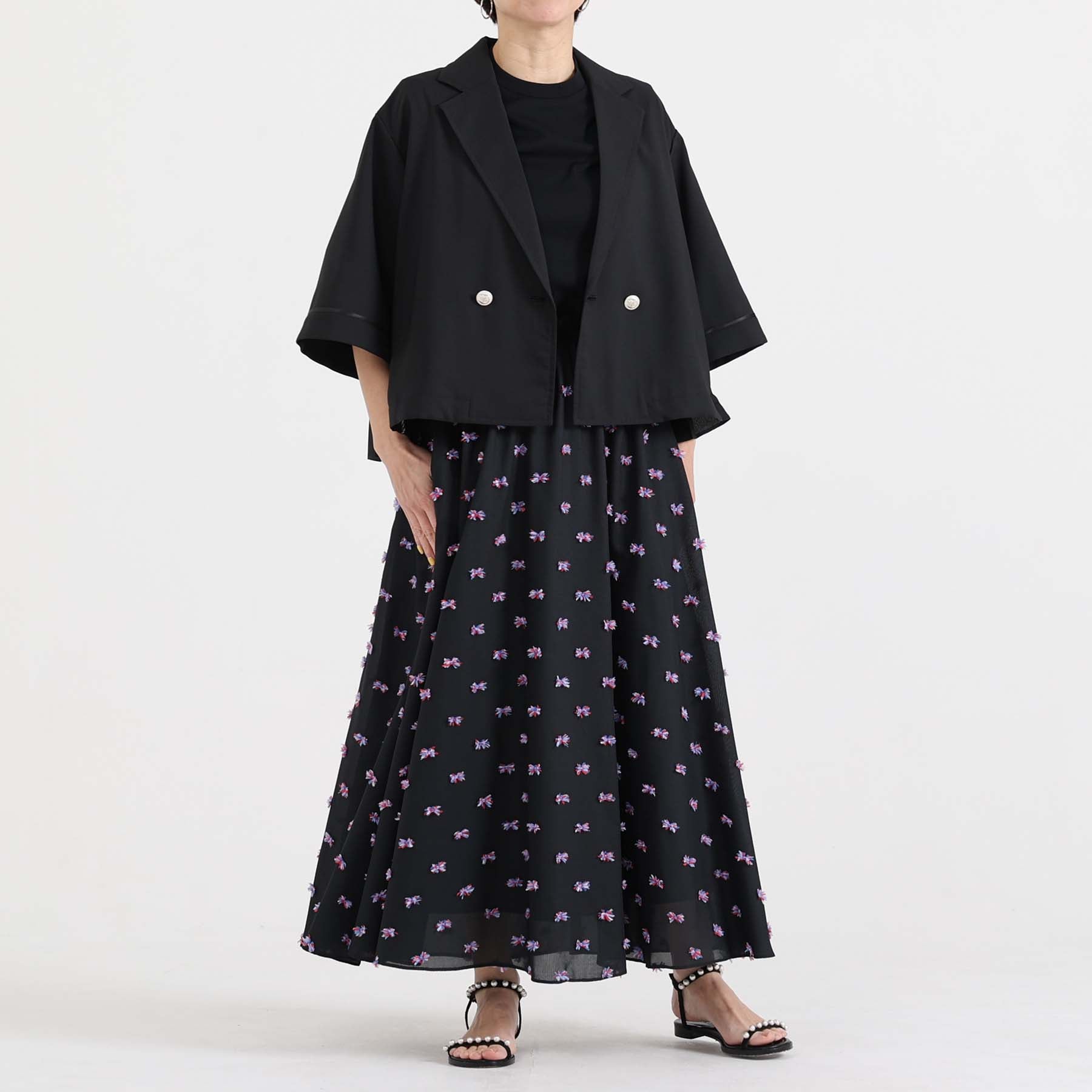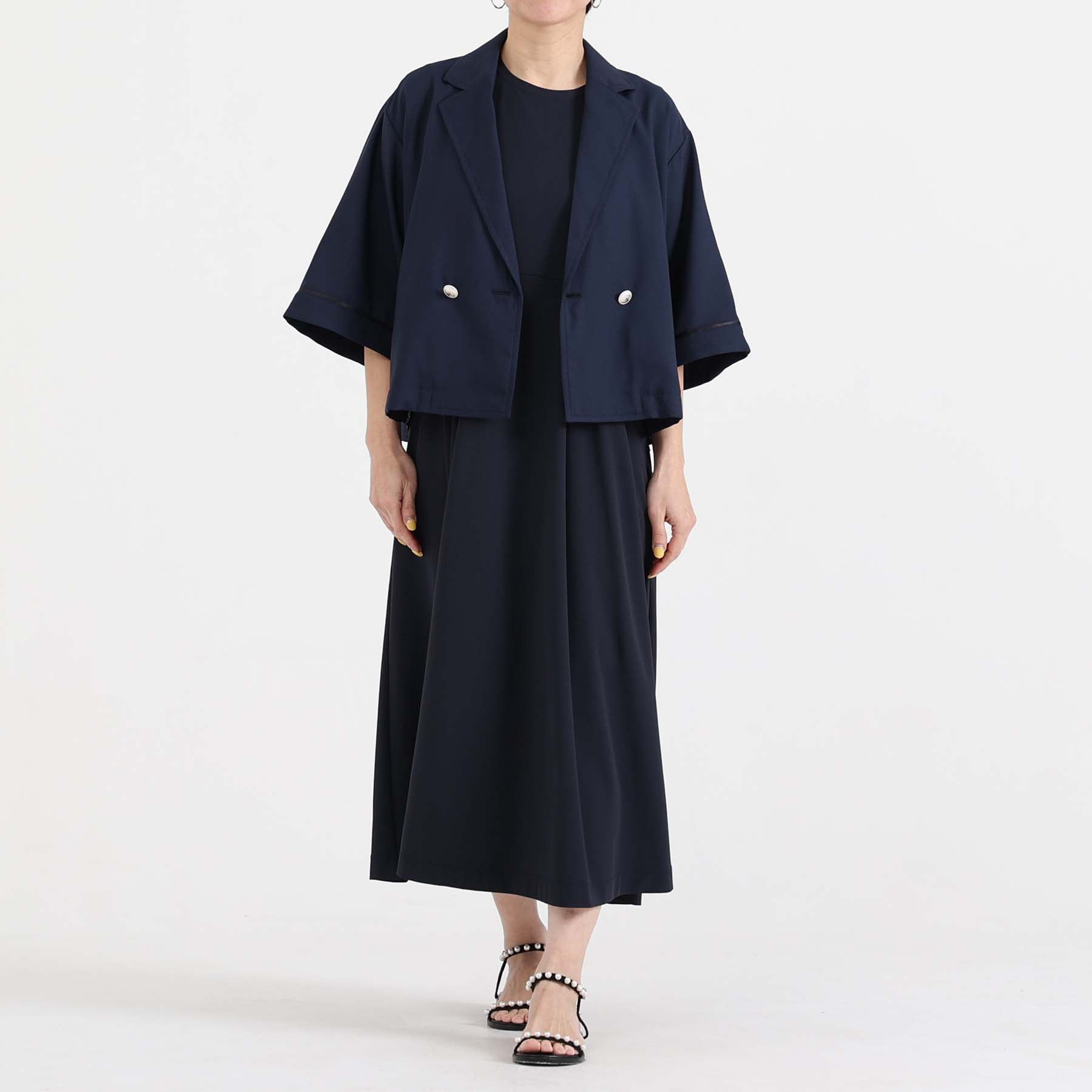 The balance of the seam position and the pattern cutting that widens circularly towards the hem create an elegant drape and create a beautiful silhouette when worn.