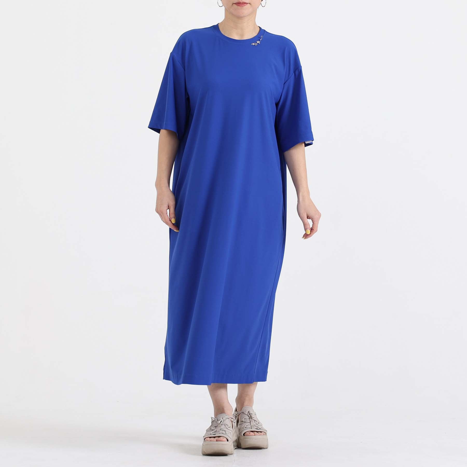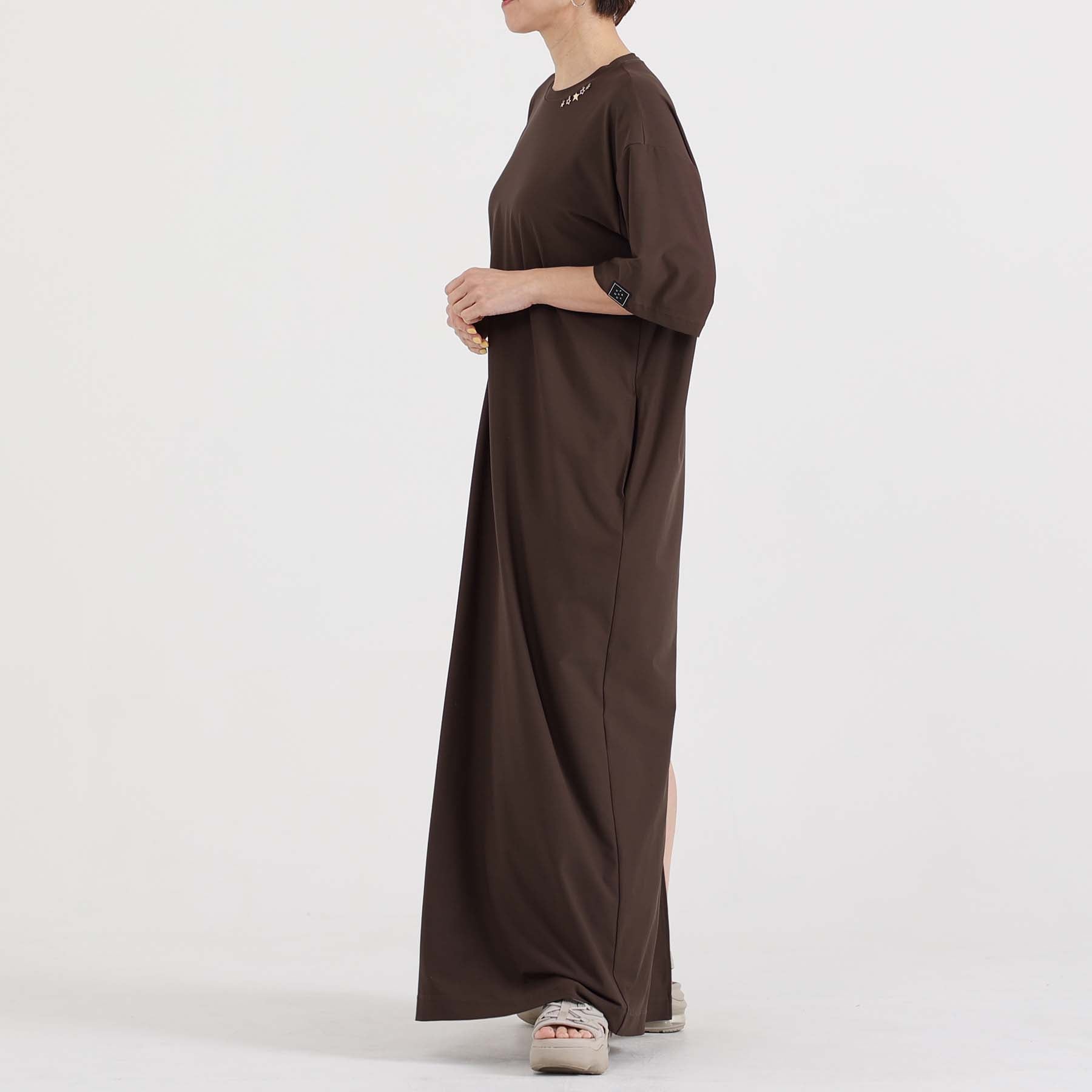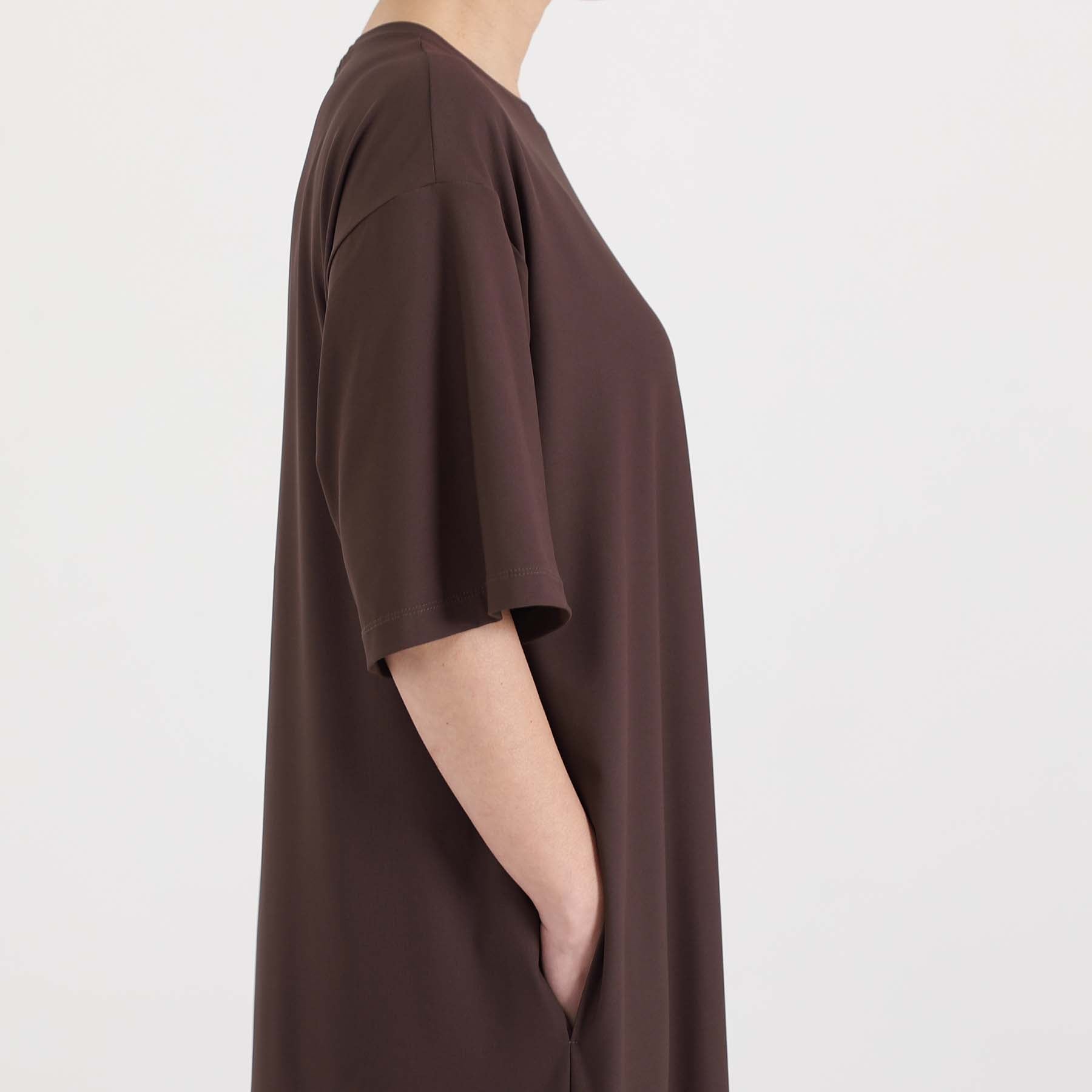 The balance of the seam position and the pattern cutting that widens circularly towards the hem create an elegant drape and create a beautiful silhouette when worn.