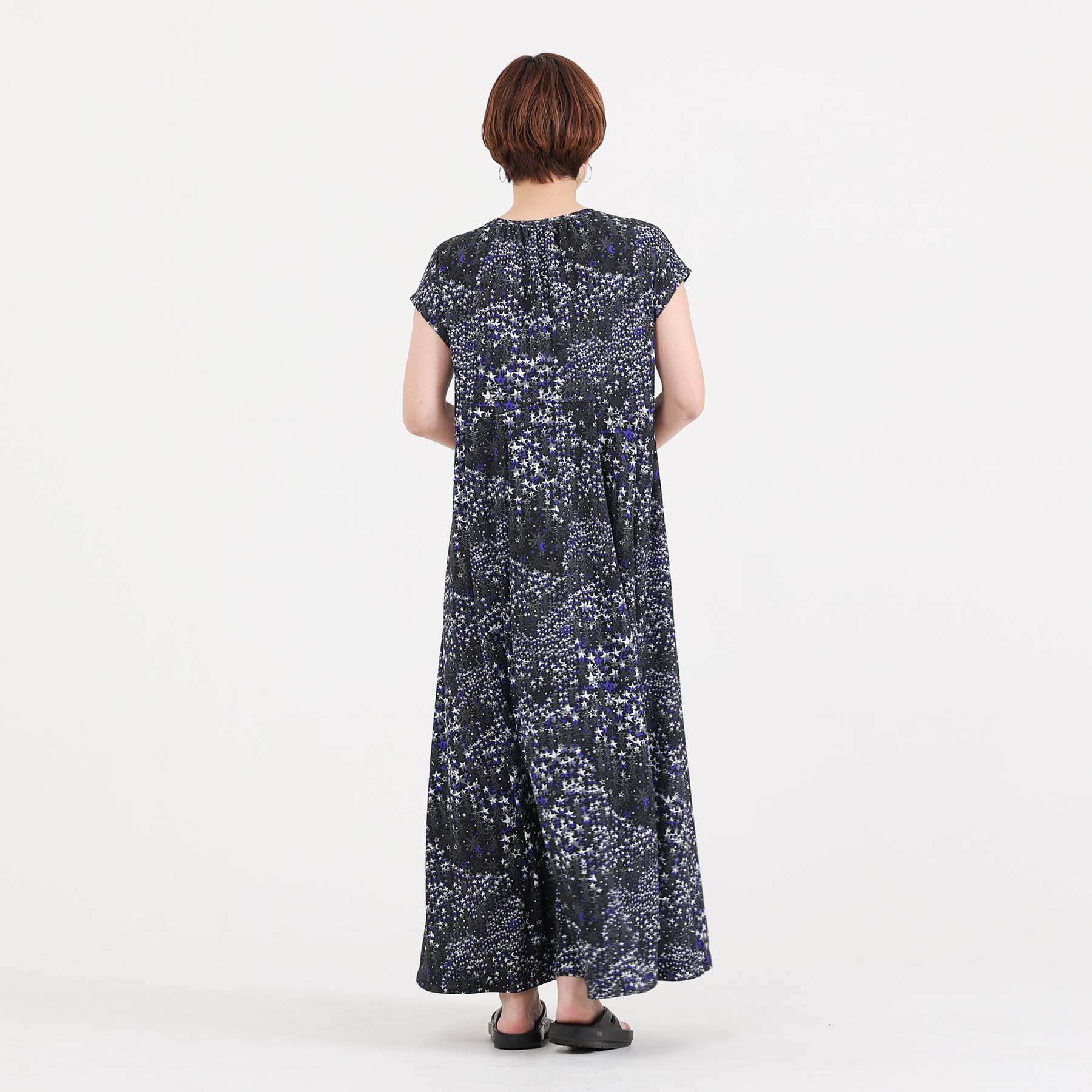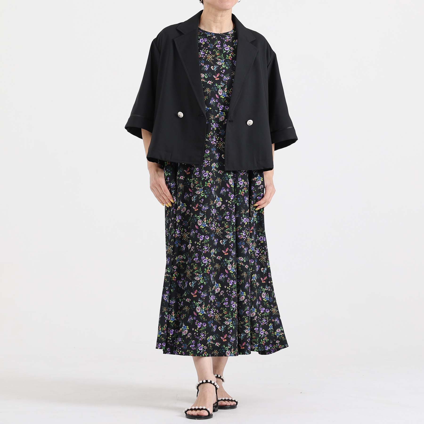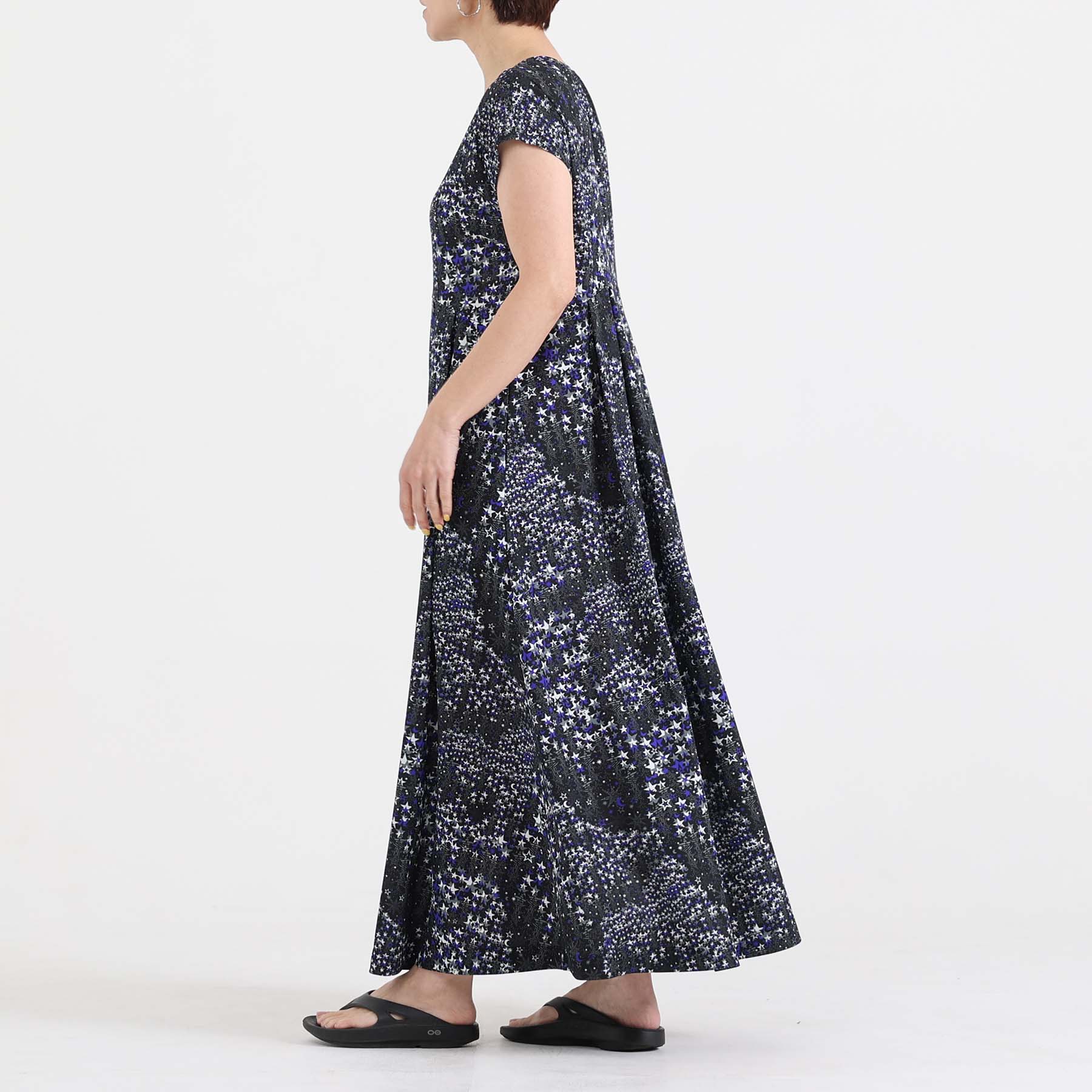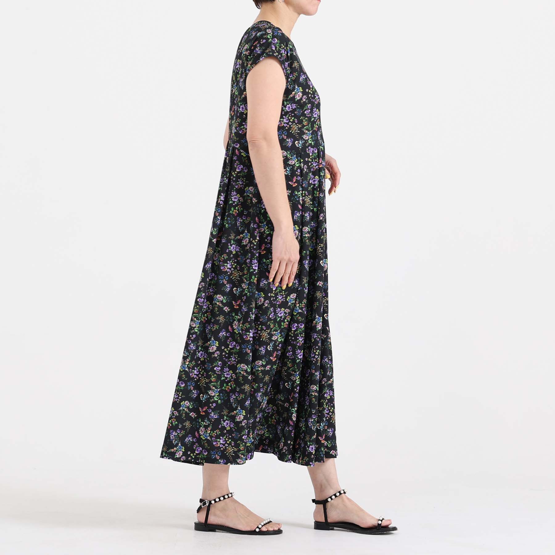 The balance of the seam position and the pattern cutting that widens circularly towards the hem create an elegant drape and create a beautiful silhouette when worn.