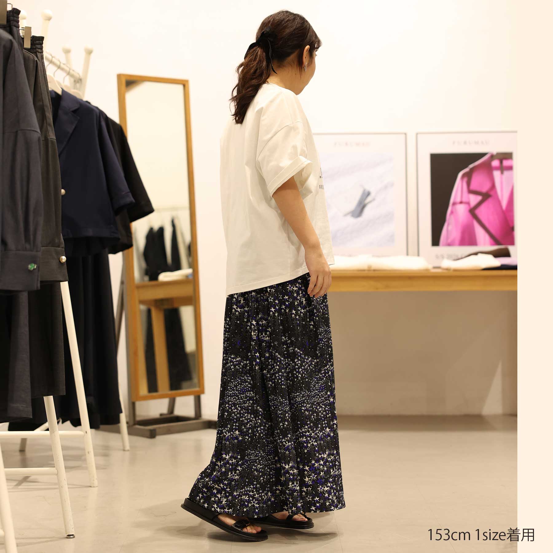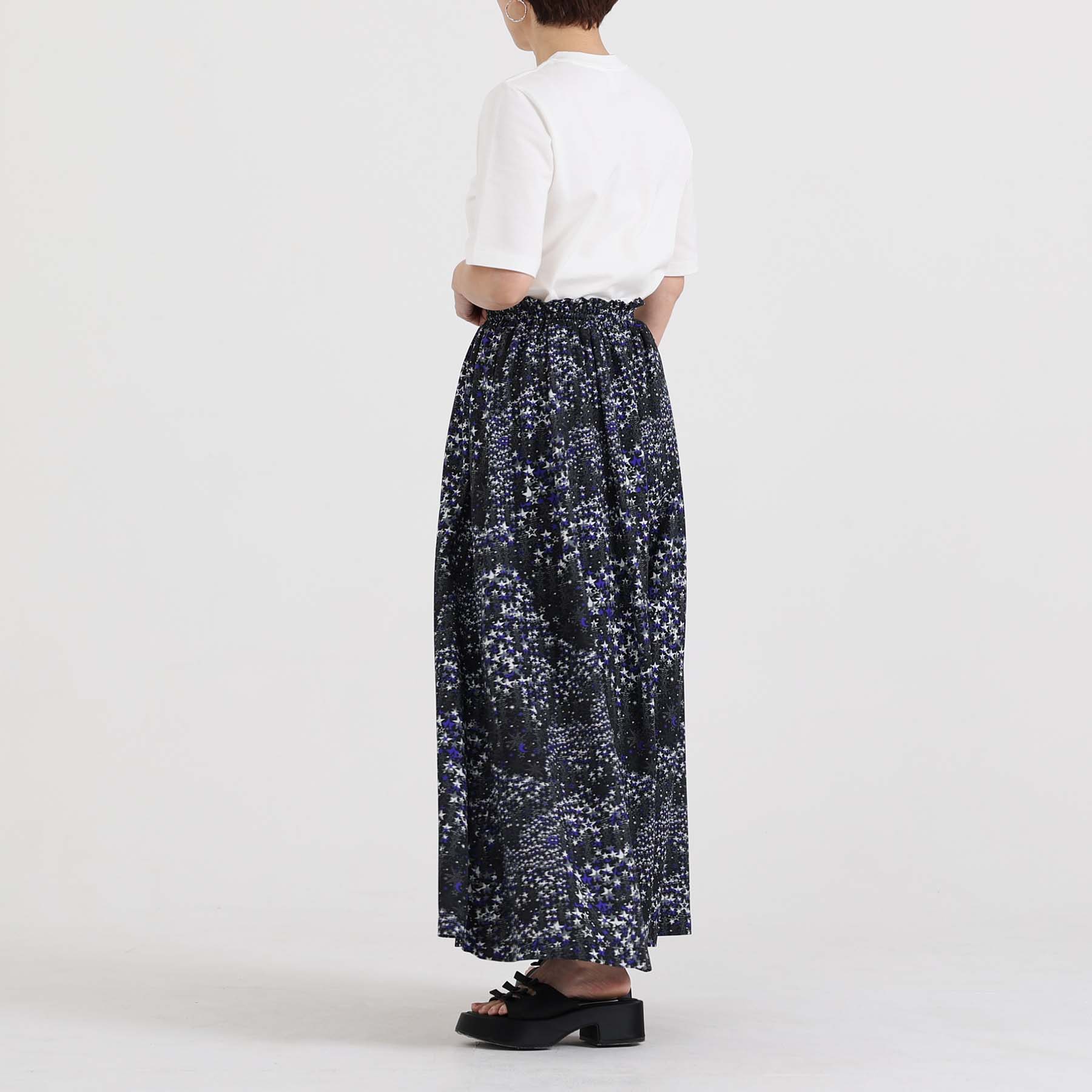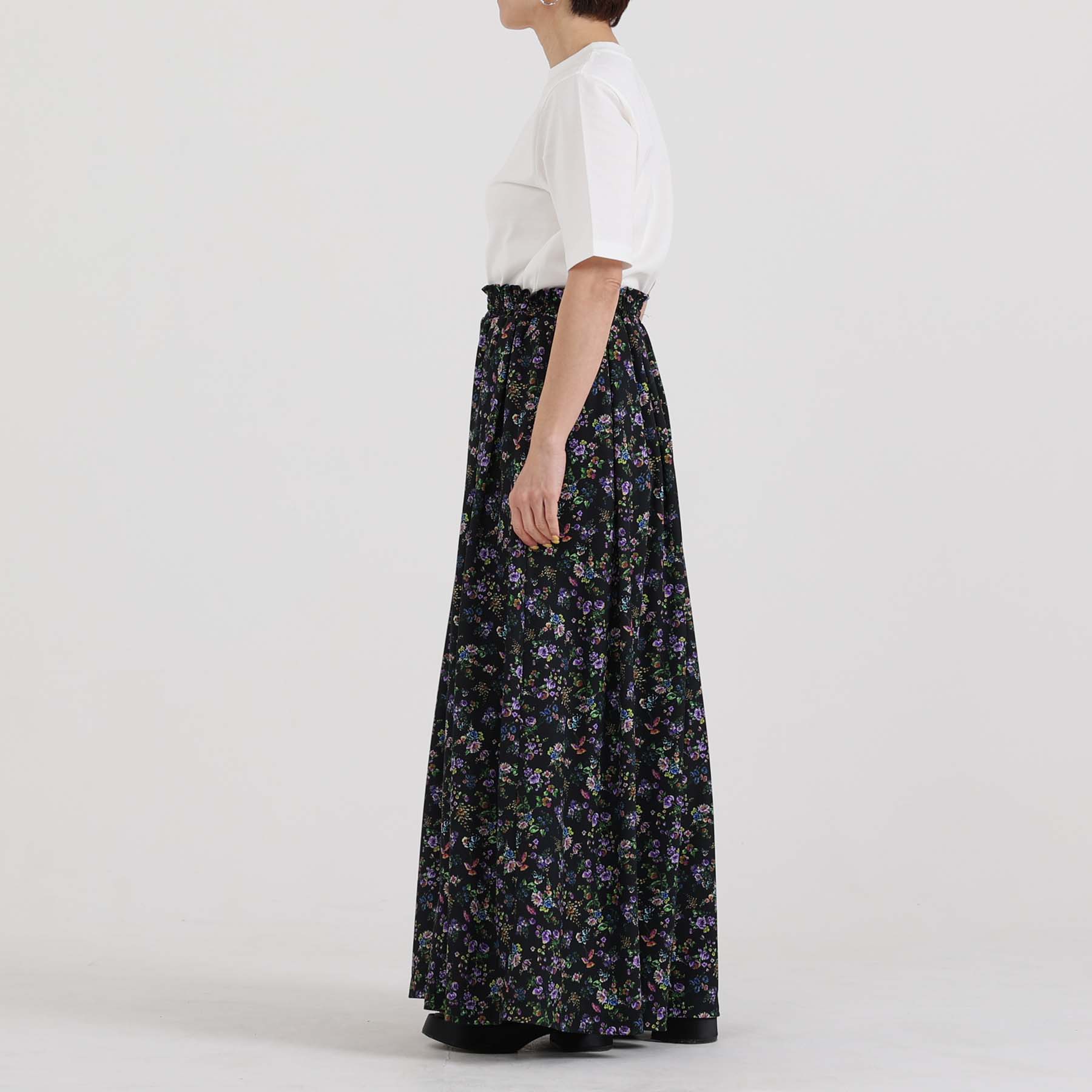 The balance of the seam position and the pattern cutting that widens circularly towards the hem create an elegant drape and create a beautiful silhouette when worn.
