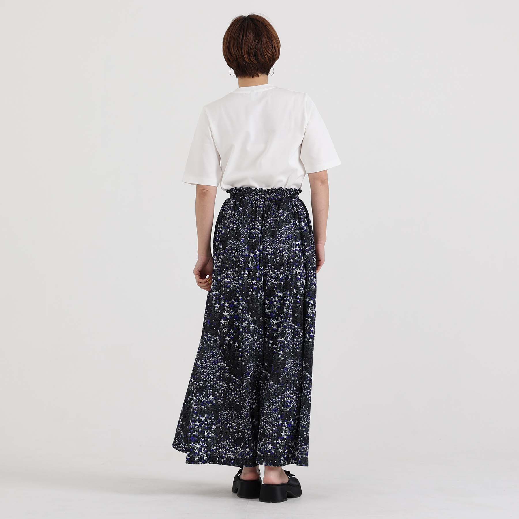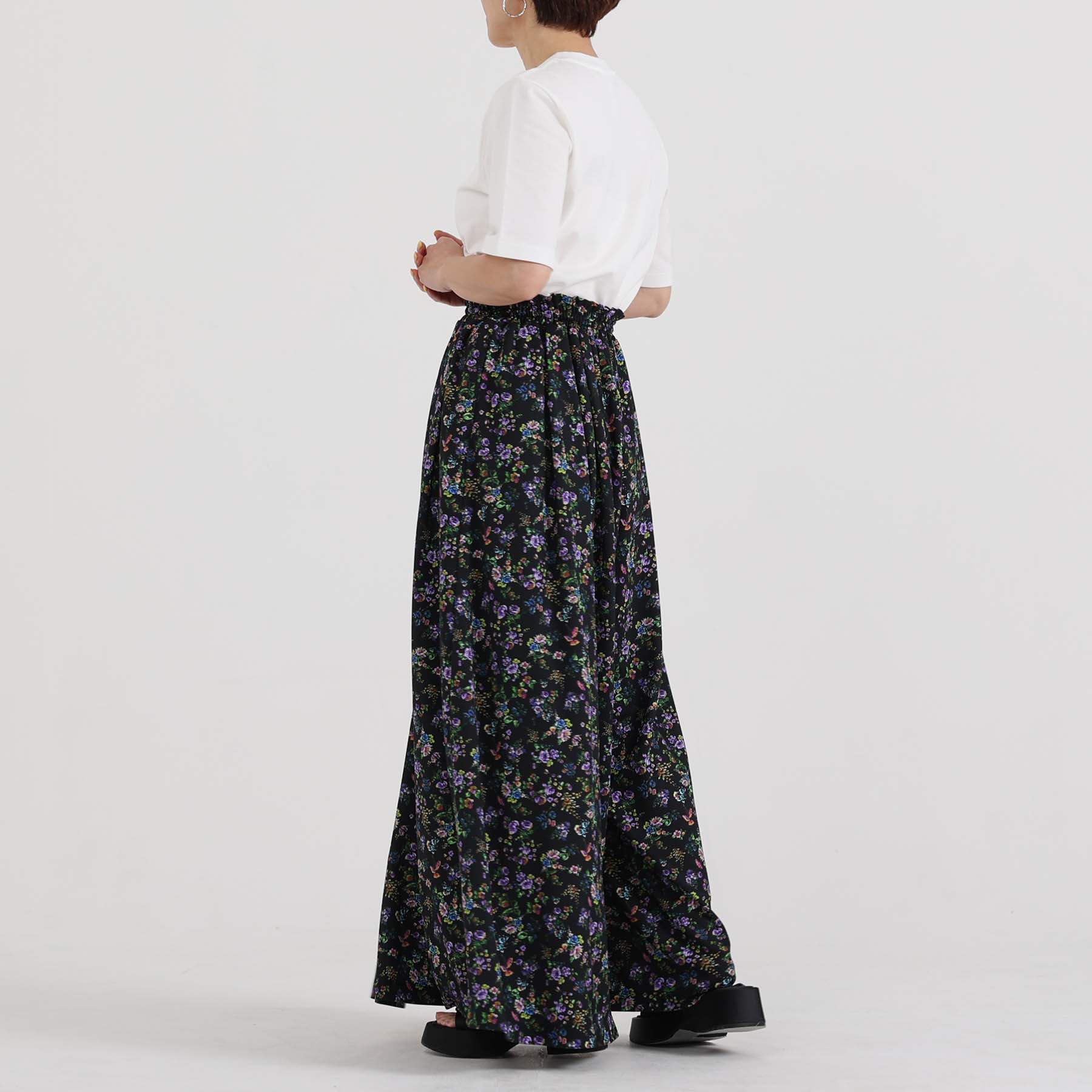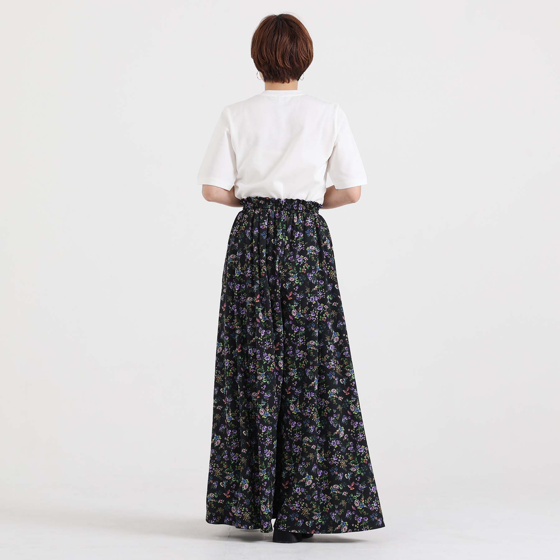 The balance of the seam position and the pattern cutting that widens circularly towards the hem create an elegant drape and create a beautiful silhouette when worn.