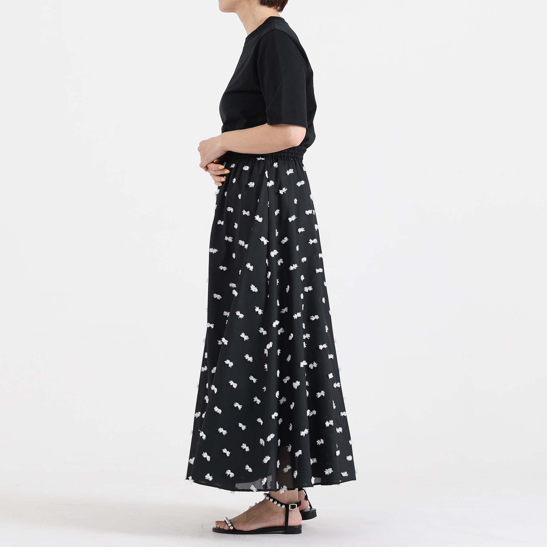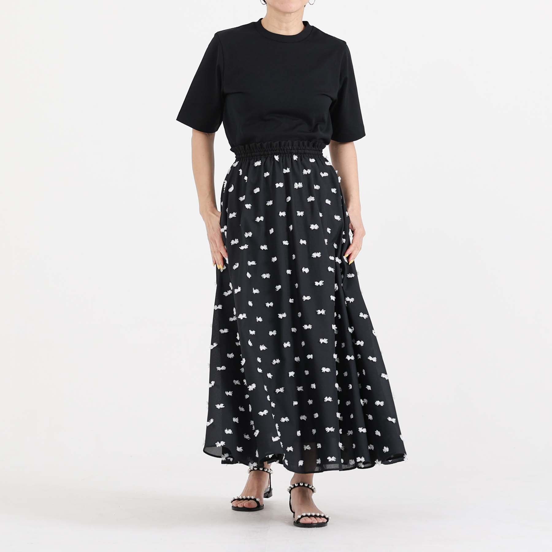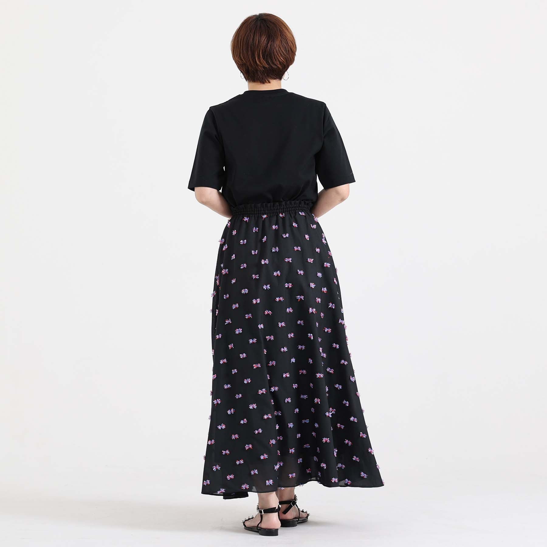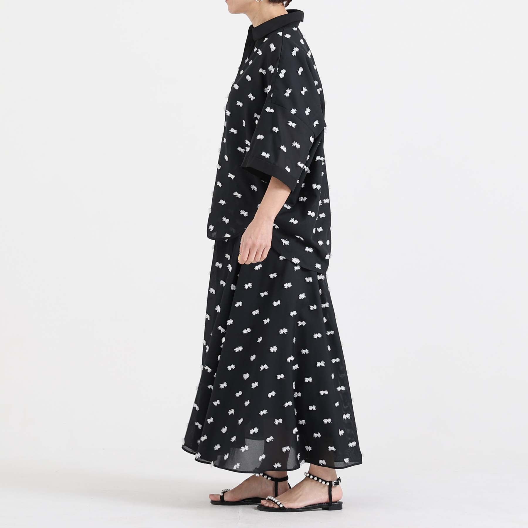 The balance of the seam position and the pattern cutting that widens circularly towards the hem create an elegant drape and create a beautiful silhouette when worn.