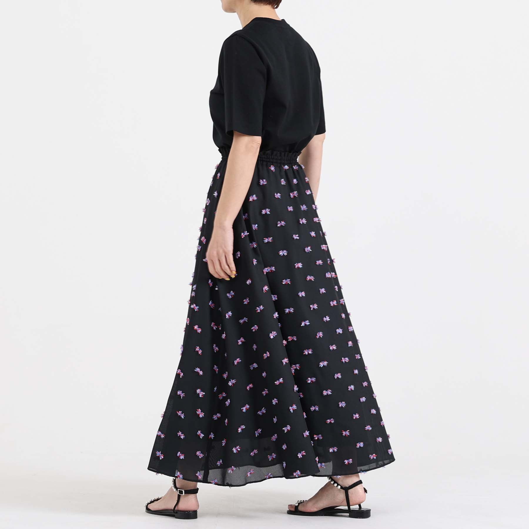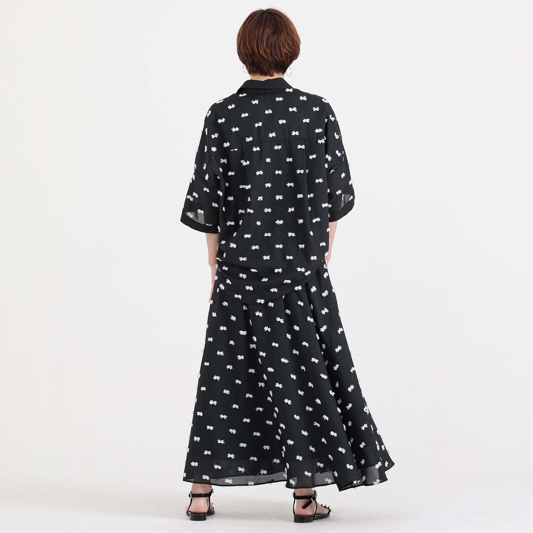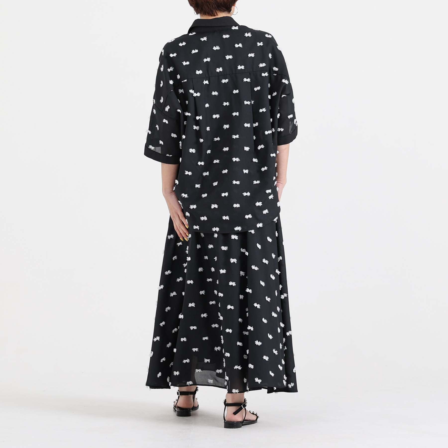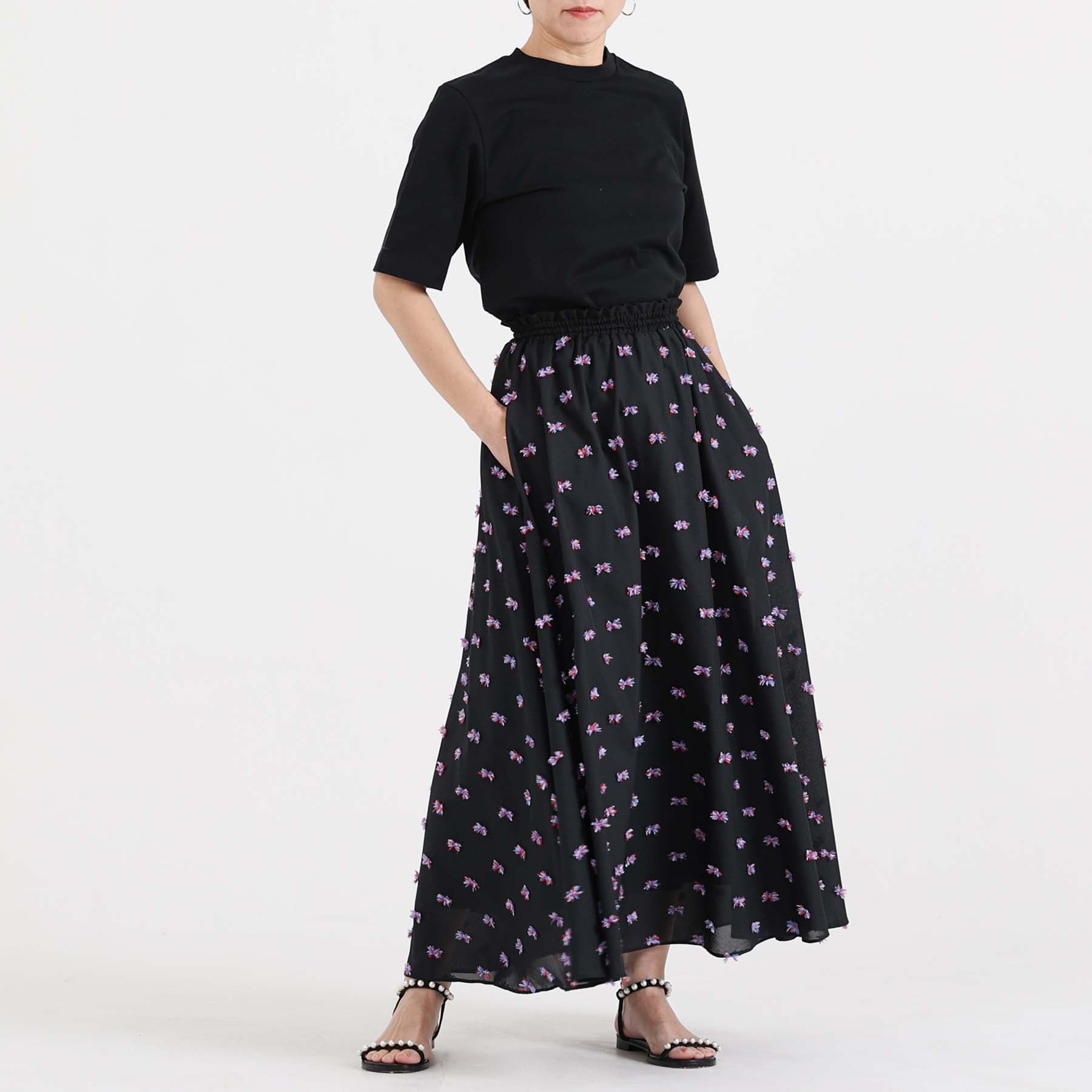 The balance of the seam position and the pattern cutting that widens circularly towards the hem create an elegant drape and create a beautiful silhouette when worn.