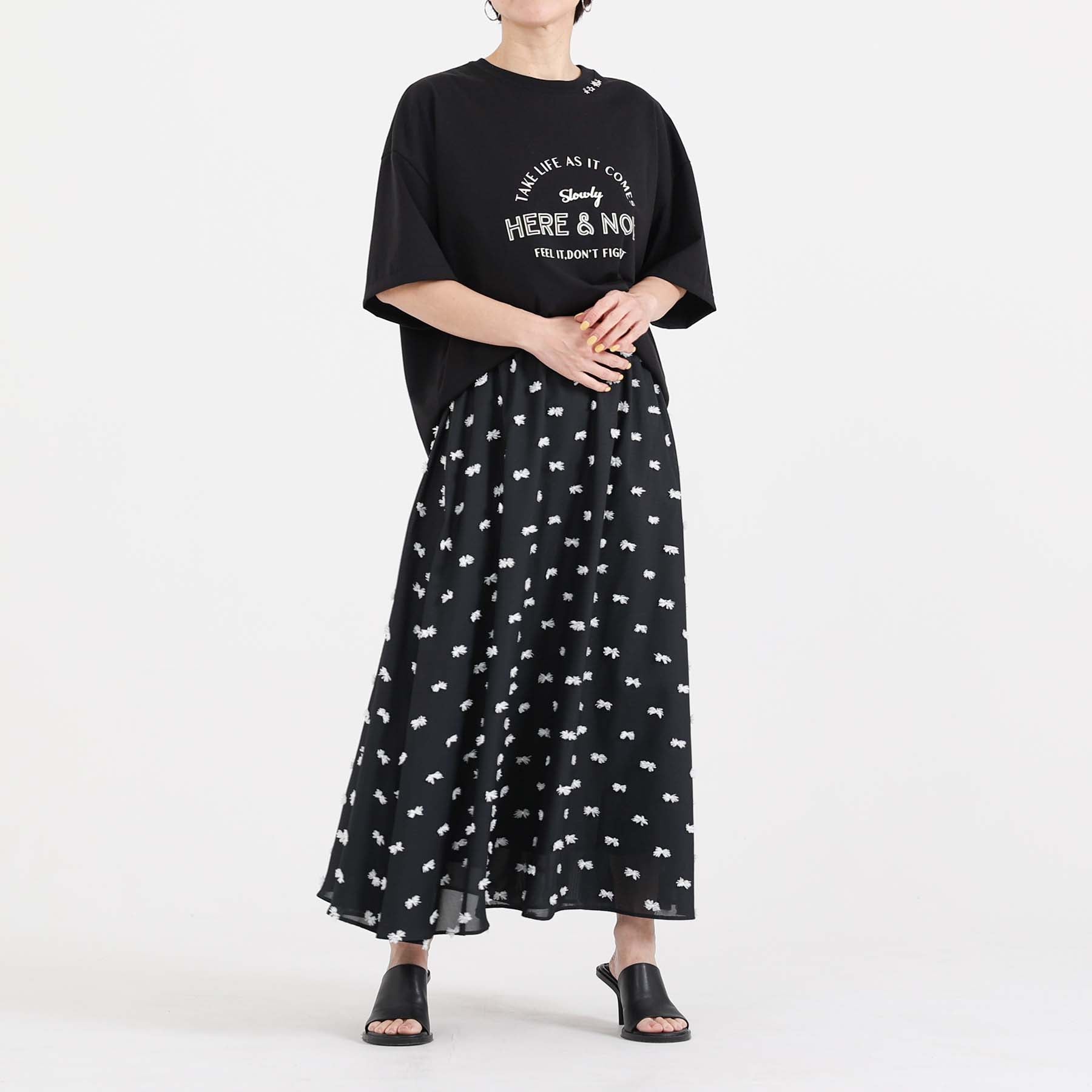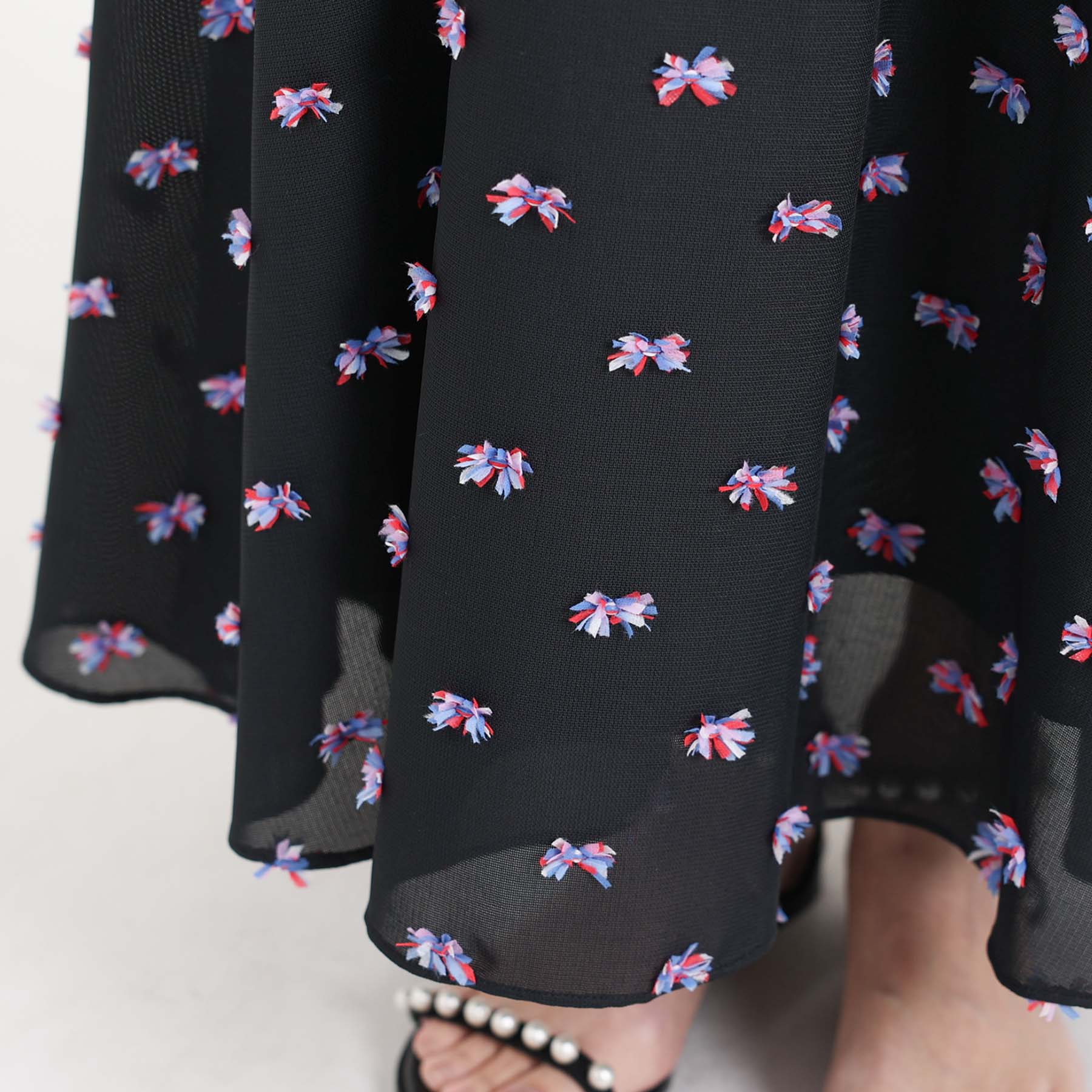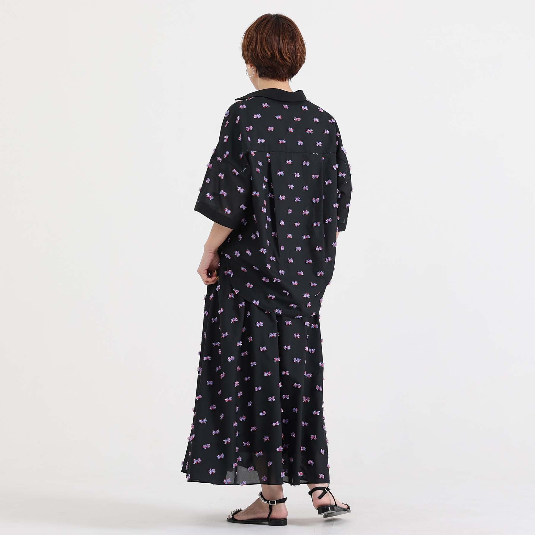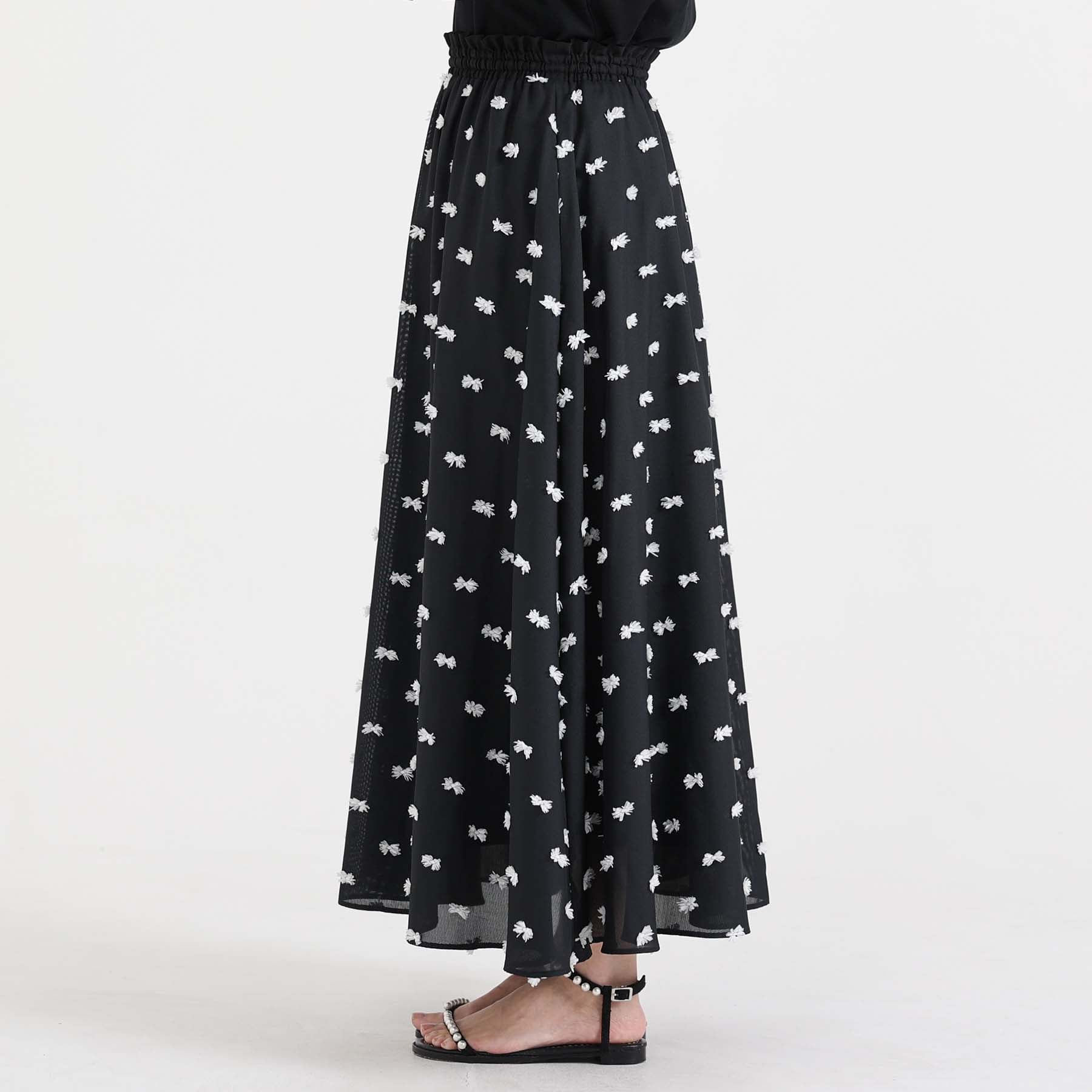The balance of the seam position and the pattern cutting that widens circularly towards the hem create an elegant drape and create a beautiful silhouette when worn.