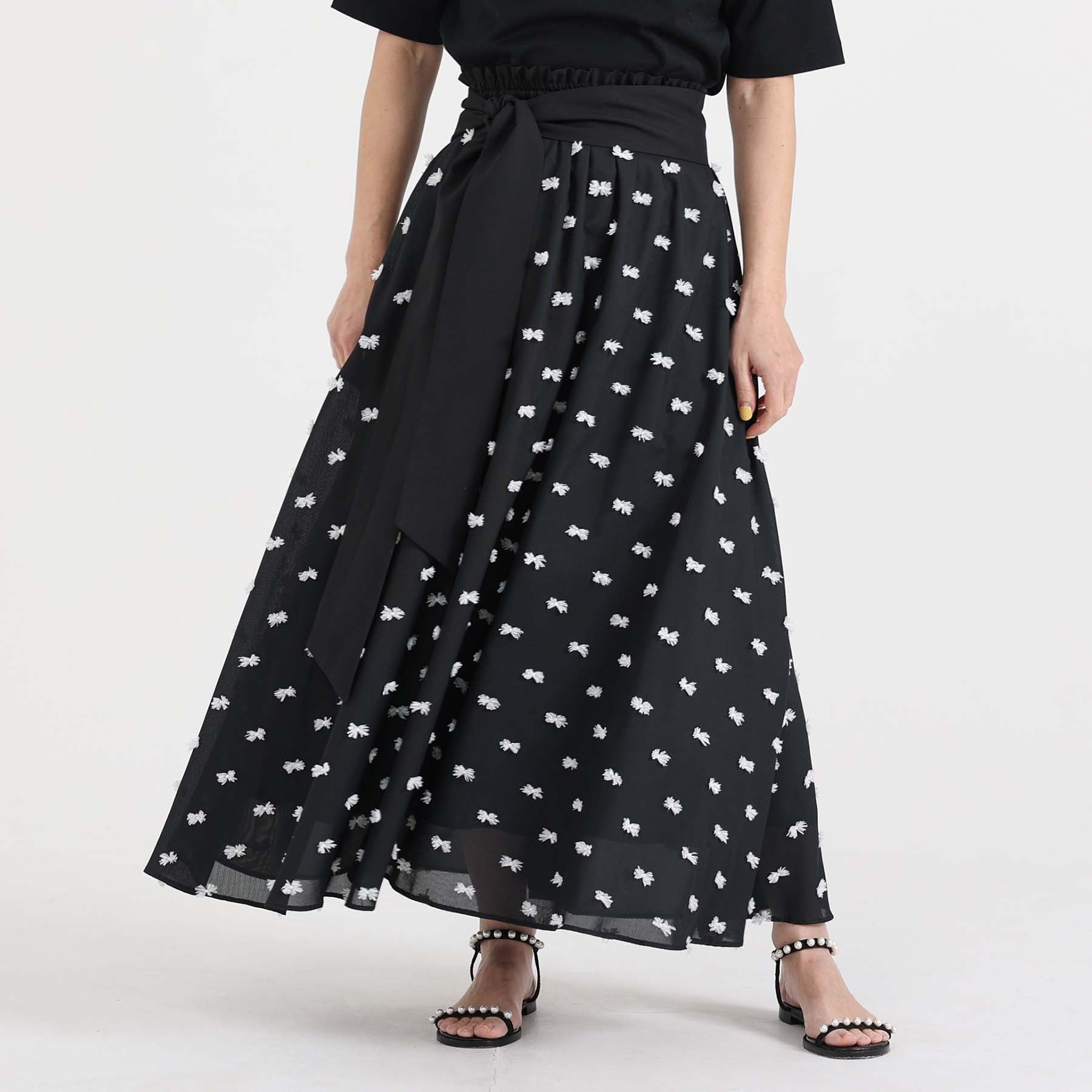 A three-tiered tiered skirt finished in the golden ratio.