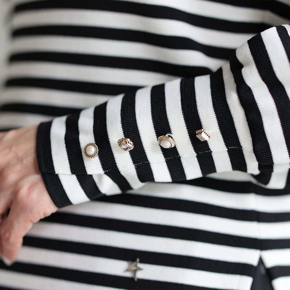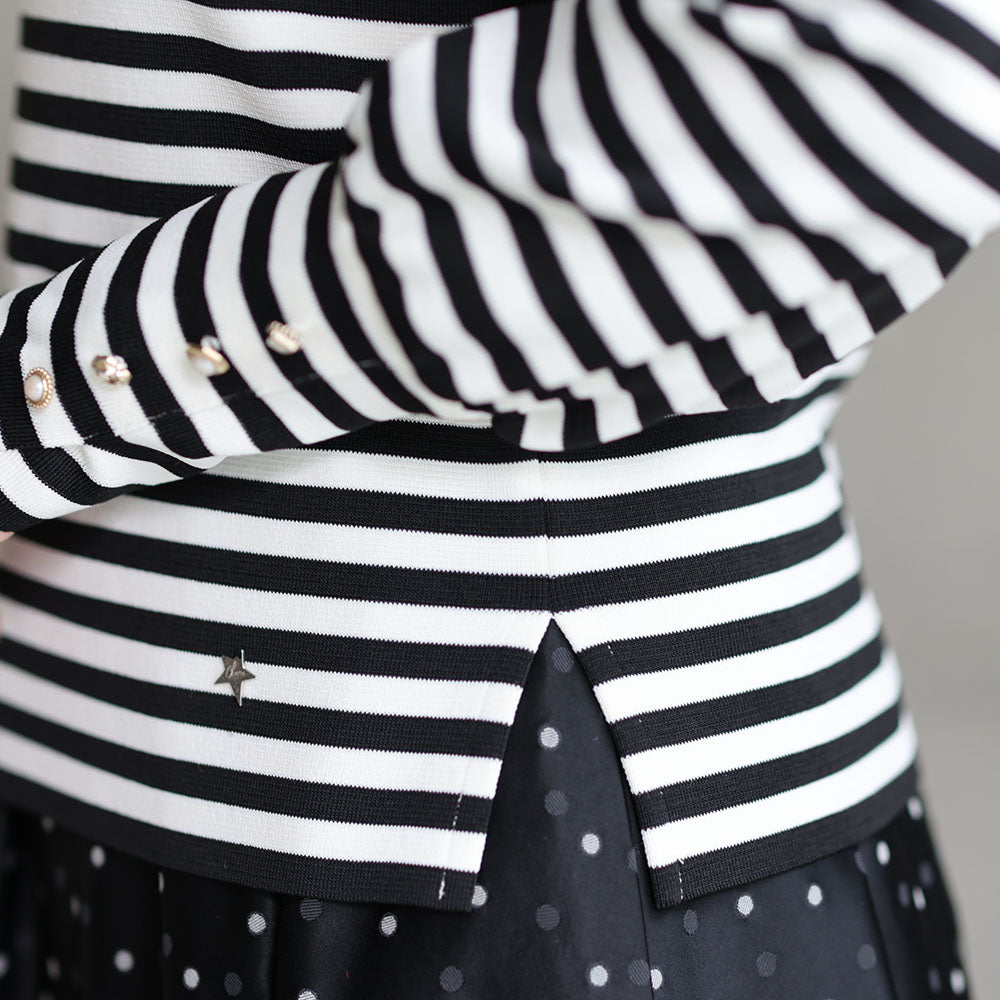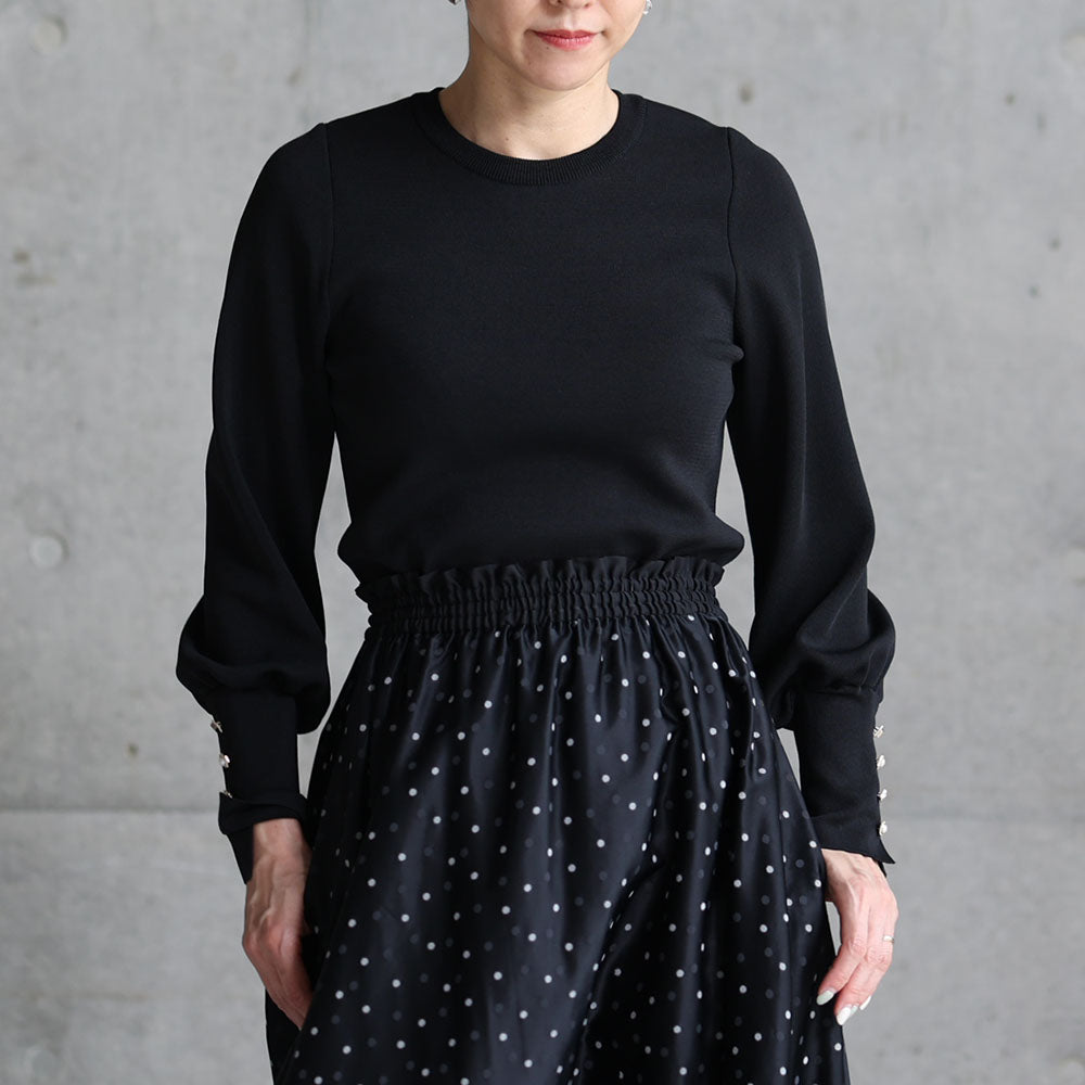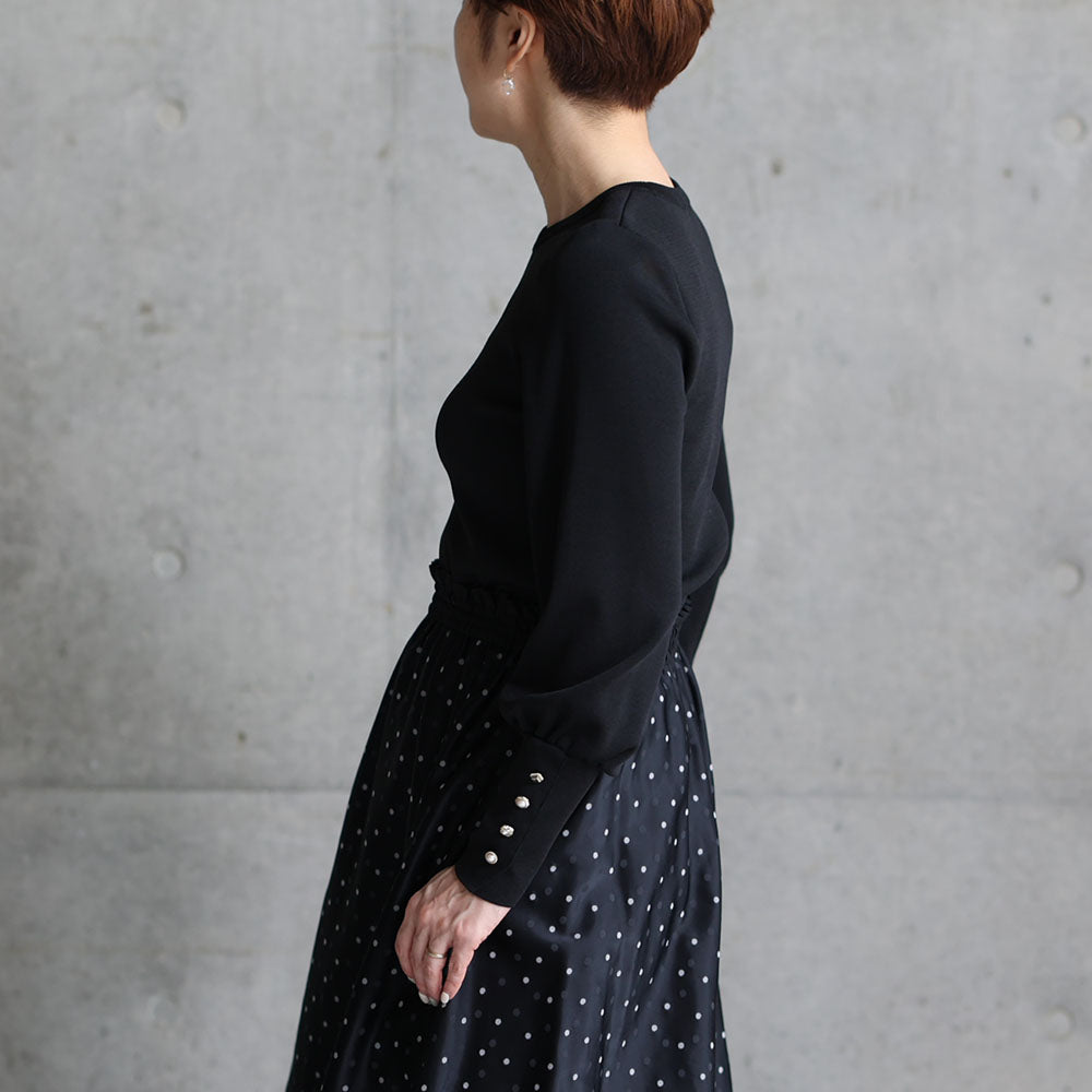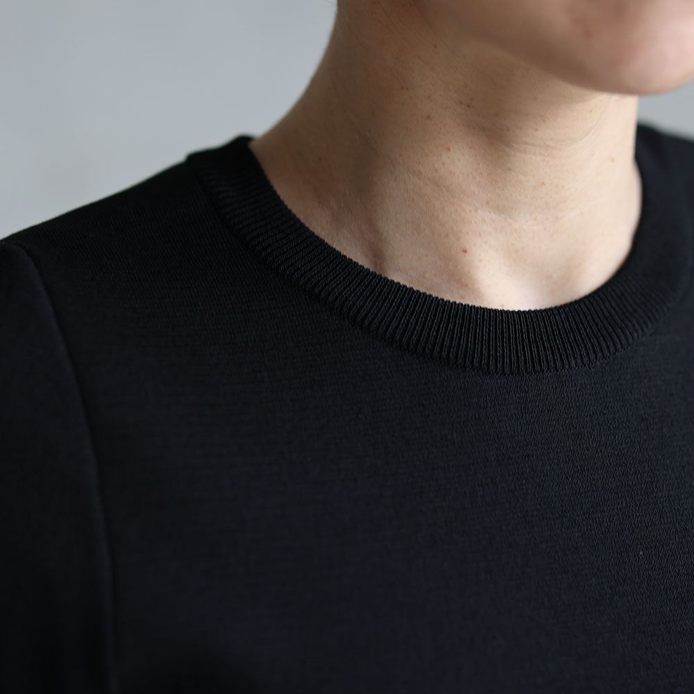 接缝位置的平衡以及朝向下摆呈圆形加宽的图案剪裁营造出优雅的垂坠感,并在穿着时展现出美丽的轮廓。