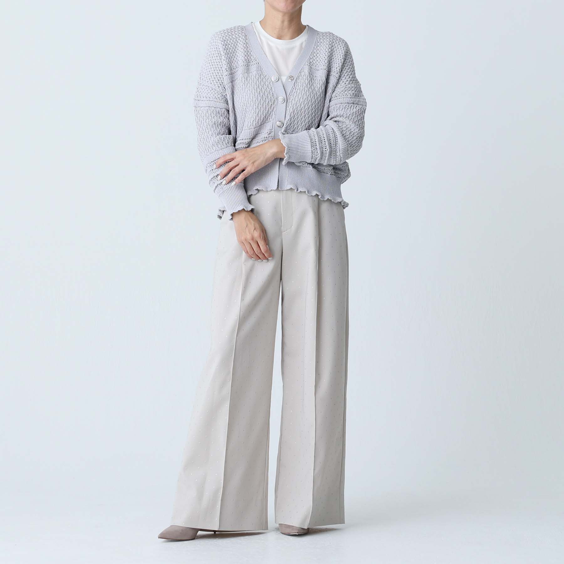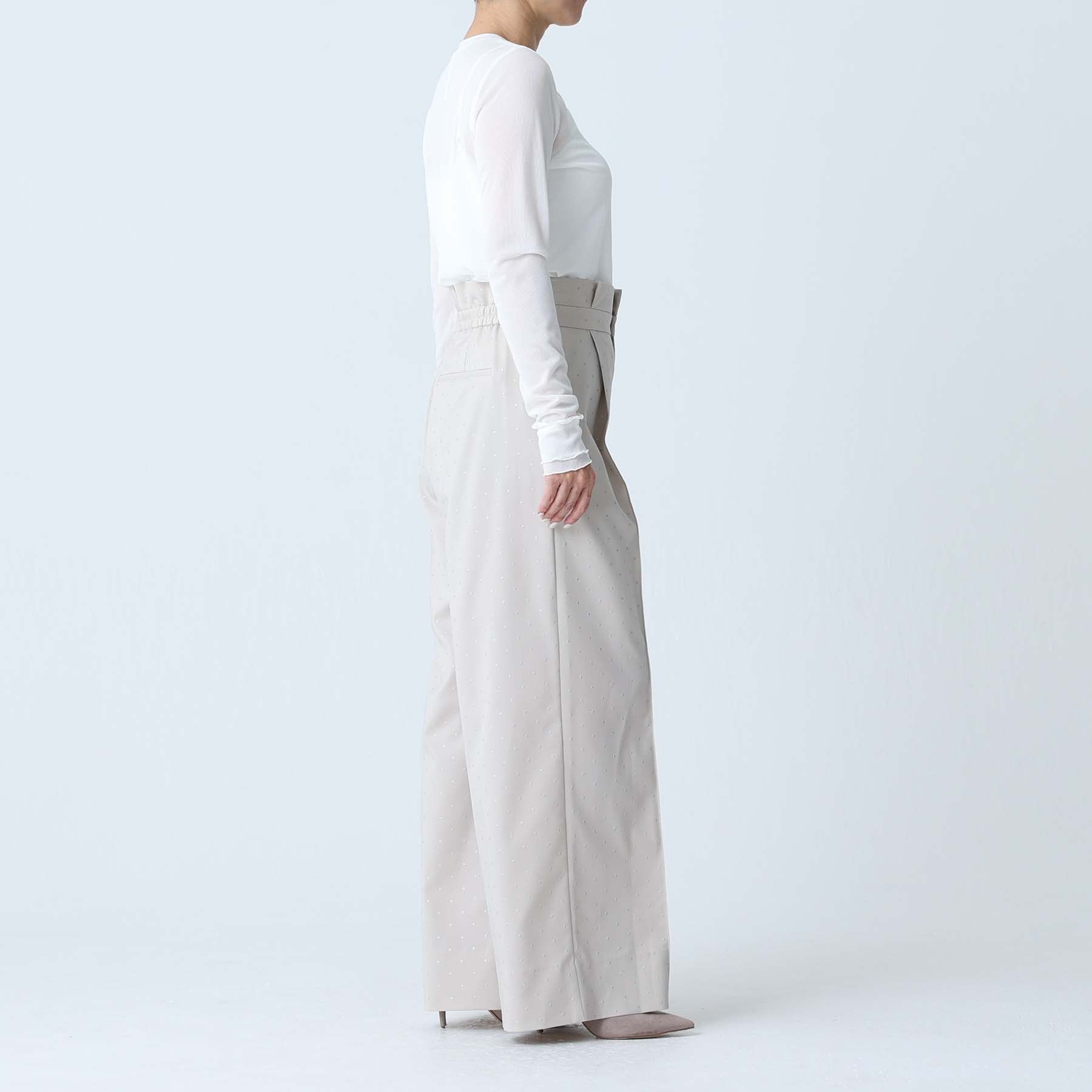 接缝位置的平衡以及朝向下摆呈圆形加宽的图案剪裁营造出优雅的垂坠感,并在穿着时展现出美丽的轮廓。